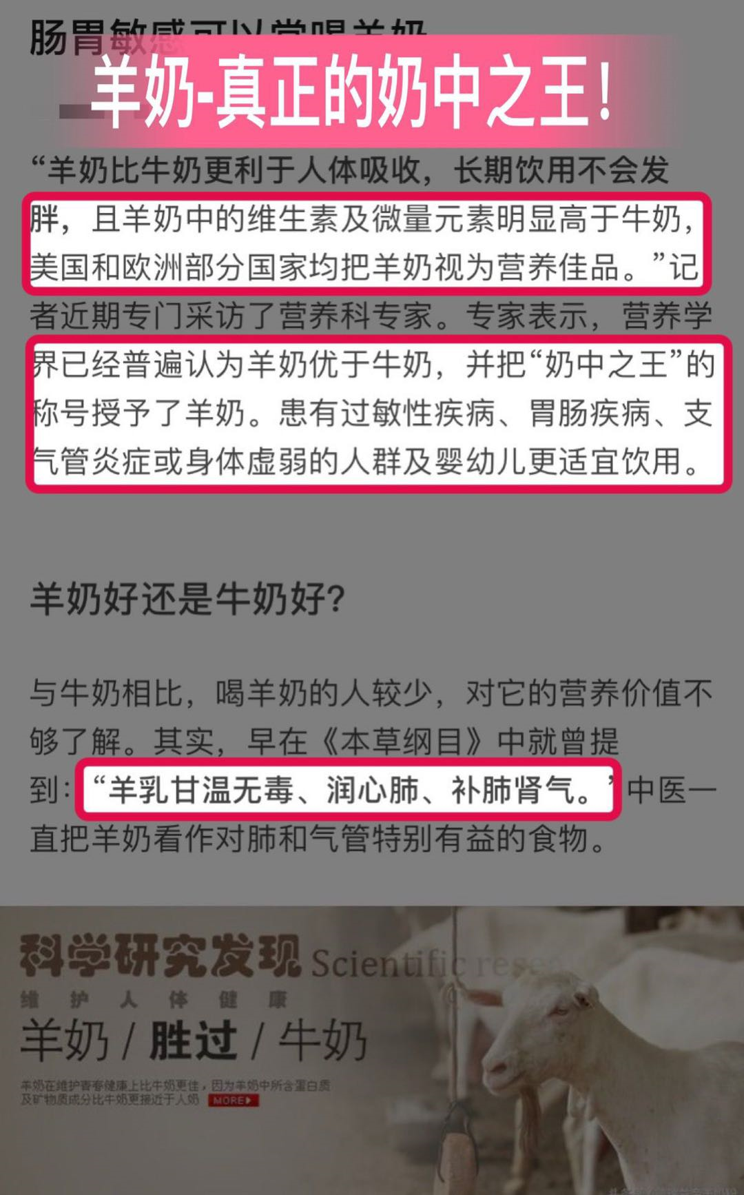《本草纲目》中记载:“羊奶甘温无毒,补寒冷虚乏,润心肺,治消渴,疗虚痨,益精气,补肺肾气和小肠气。”