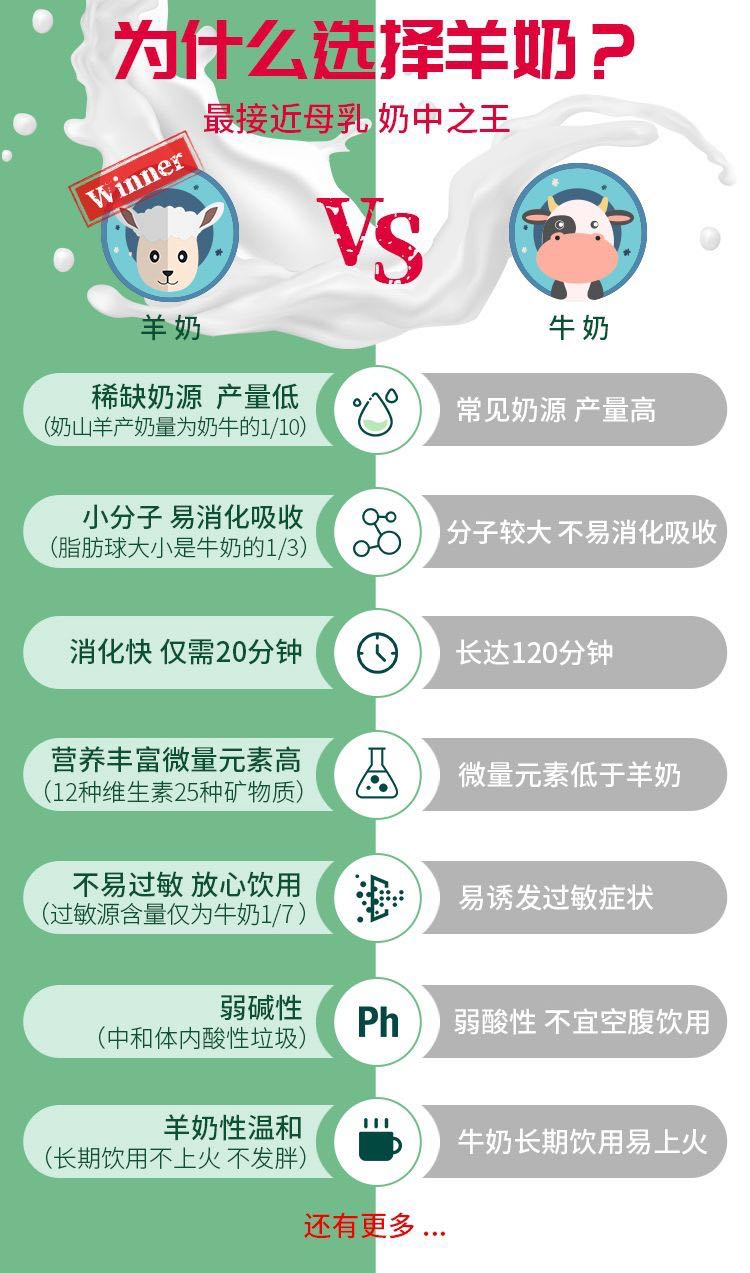 羊奶比牛奶更容易被身体所吸收,不会让你轻易出现过敏问题,对婴儿、青少年的发育十分有利,还可以延缓皮肤的衰老,大大提高中老年人免疫力!