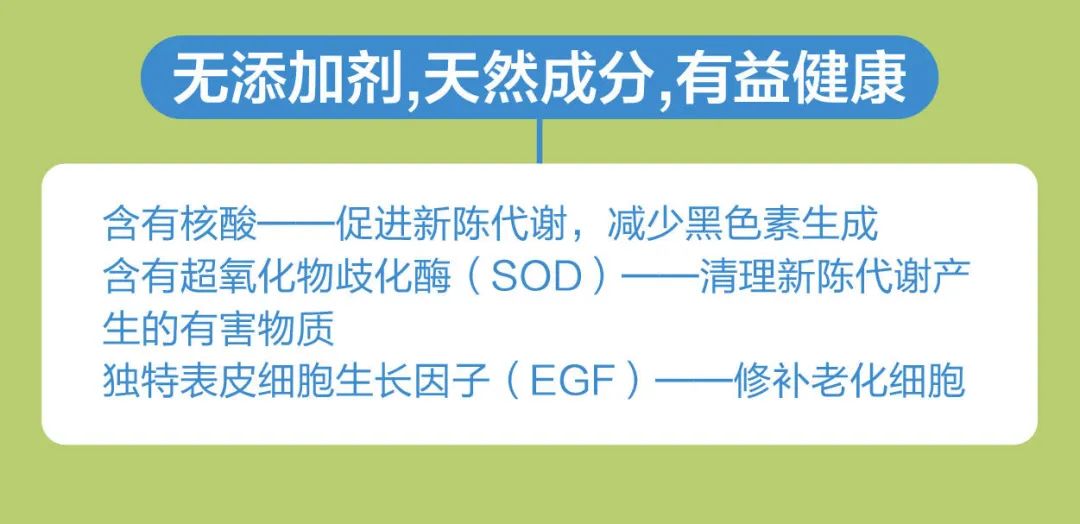 ★含有核酸—促进新陈代谢,减少黑色素生成。