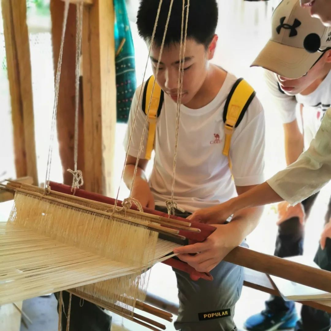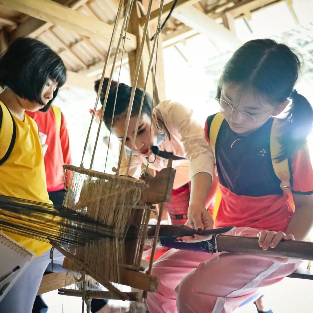 营员们深入到傣族人家的村落,体味真正的匠人传承,感受民族手工艺的璀璨:北叶经、曼轮制陶、手工造纸、织棉...