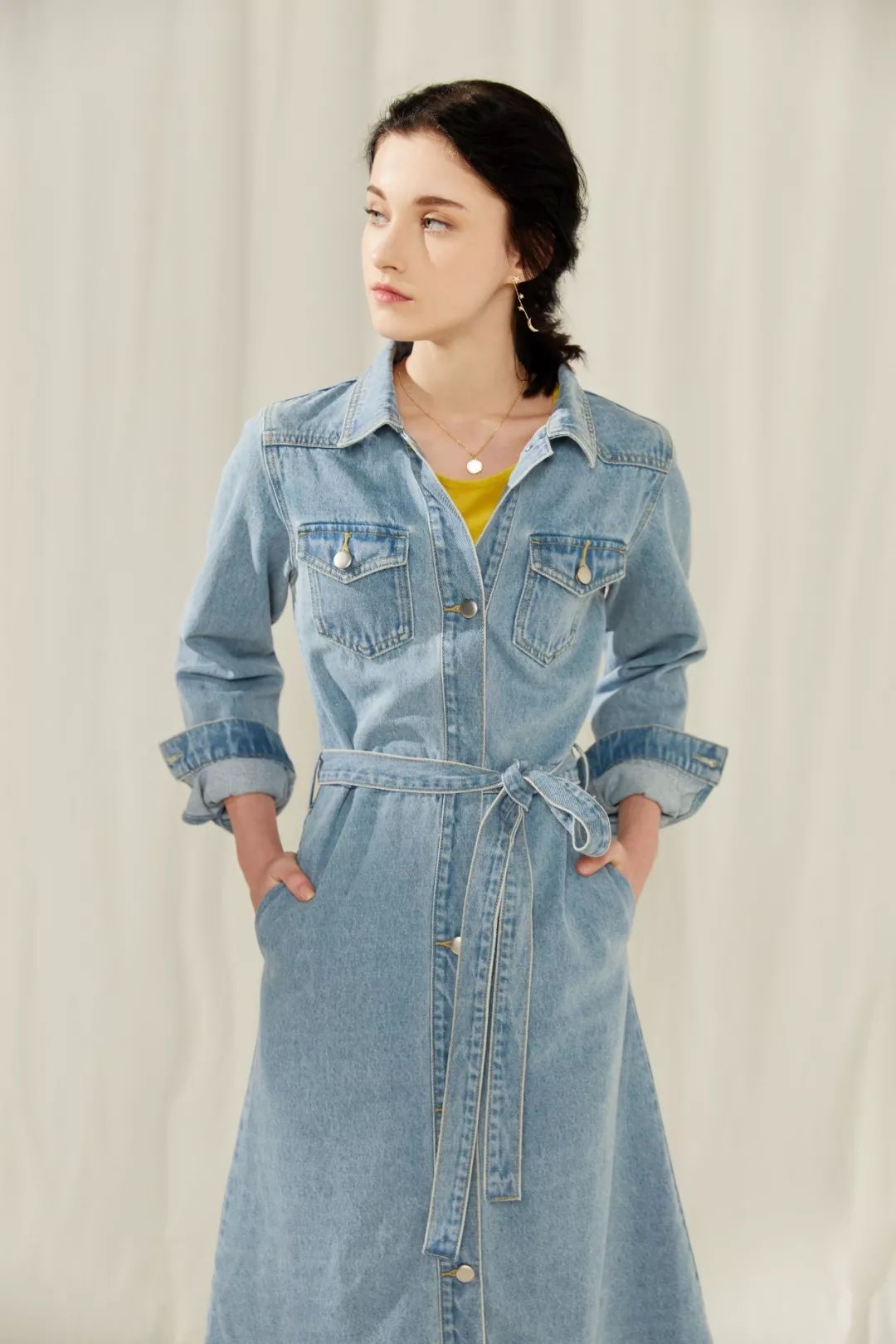 牛仔穿一套是今年很夯的复古穿法,拥有了这件风衣裙,你也能穿出一样的效果,还不用去费心寻找合适的上下装。▼