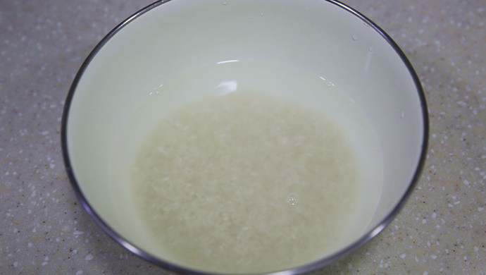 1、将大米洗净后放入凉水,浸泡30分钟,然后控干水份,加入半勺油(喝汤匙勺)拌匀;