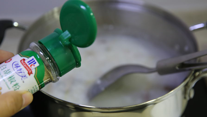 3、5分钟后加入白糊椒粉,适量盐拌匀;