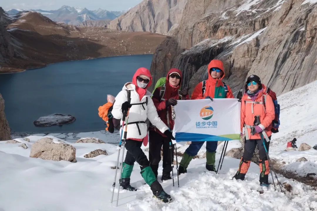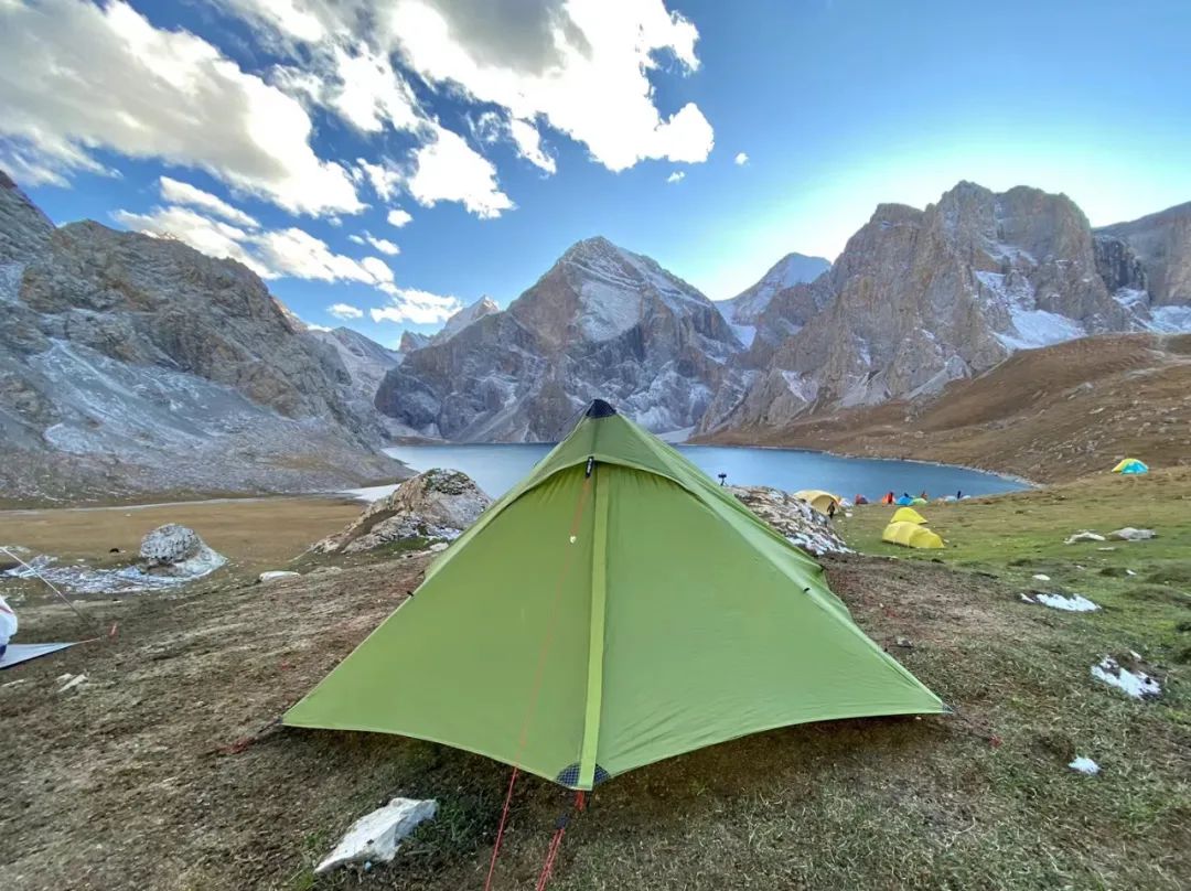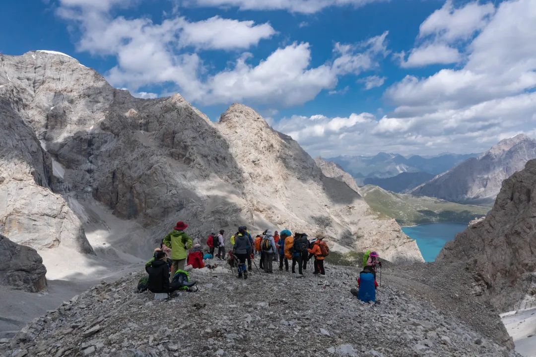 第三天基本不用趟水,但要翻越全程最高的阿克布拉克达坂,当晚抵达天堂湖营地。阿克布拉克达坂海拔约 3900 米,有挑战,却不至于像西藏川西等地的高海拔垭口一样让人绝望。秋天达坂基本都会积雪,行走需冰爪,道路狭窄及有亮冰处要格外谨慎;夏天,达坂冰雪消融,裸露出灰色的碎石坡。