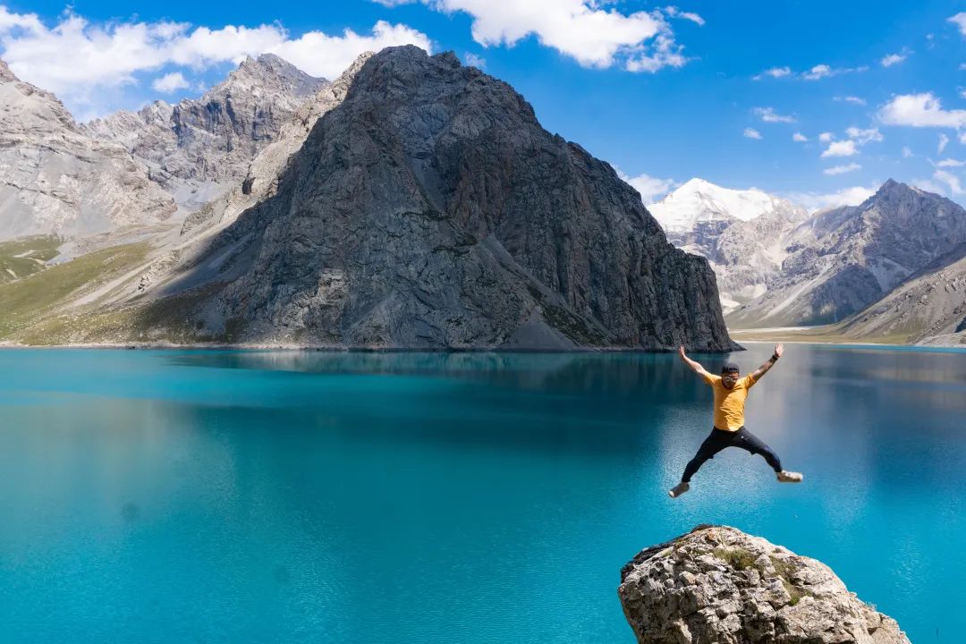 但天堂湖于我最初的感动,却是在抵达之前。走过三天南疆的荒芜,一番辛苦爬坡后,我们终于站上海拔3900米的阿克布拉克达坂,达坂之巅一个转弯,天堂湖蓦然出现,在蔚蓝天空下闪着耀眼的宝蓝色水光,成为苍茫群山中让人心动不已的存在。目光相交的一瞬,我像是听见它在说——“看!这是乌孙对你的奖赏。”