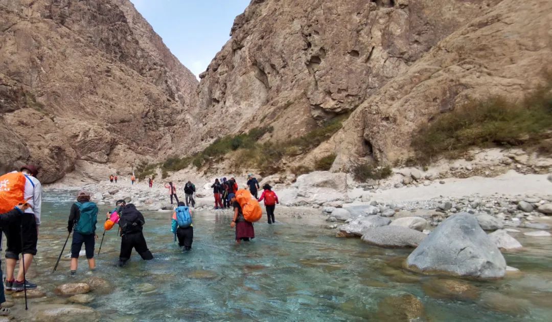 河水晶莹如玉,赶上下雨,便瞬间浑浊起来。河道不宽,但雨季水流湍急,需在领队引导下谨慎通过,否则容易跌倒湿身,有失温风险。