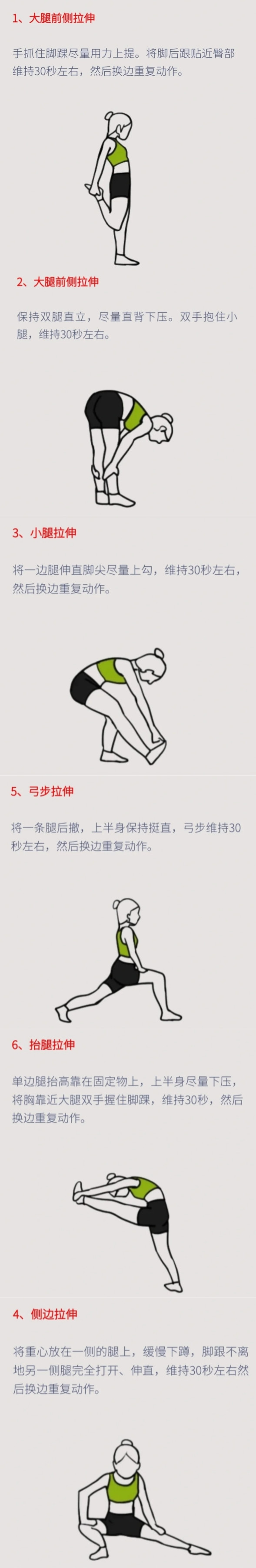 ④舒缓拉伸法拉伸不仅有助于减轻不适还能避免肌肉腿,以下6个拉伸动作有助于消除肌肉酸痛。