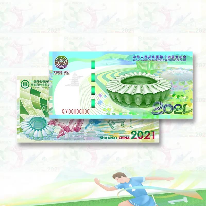 此次,为庆祝2021第十四届全国运动会召开,经第十四届全国运动会组织委员会授权,中国印钞造币总公司审批,西安印钞有限公司设计、印制并发行了“第十四届全国运动会纪念券”!