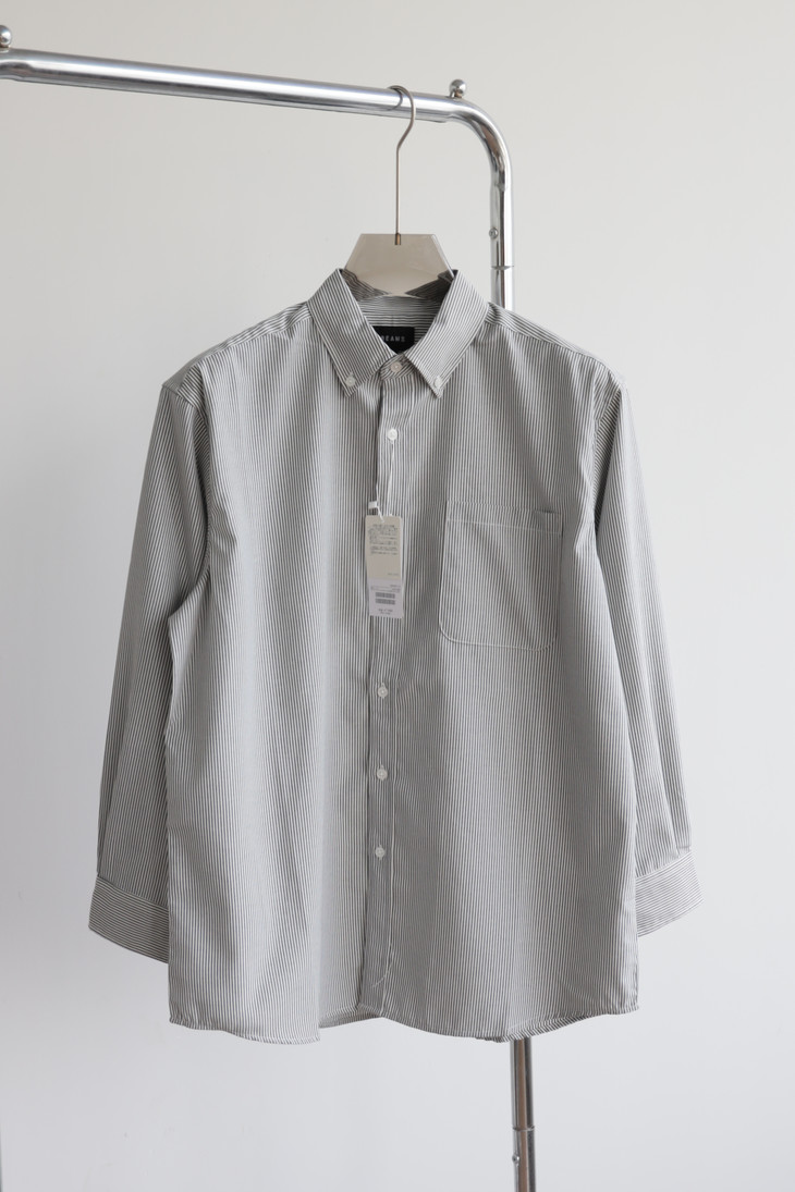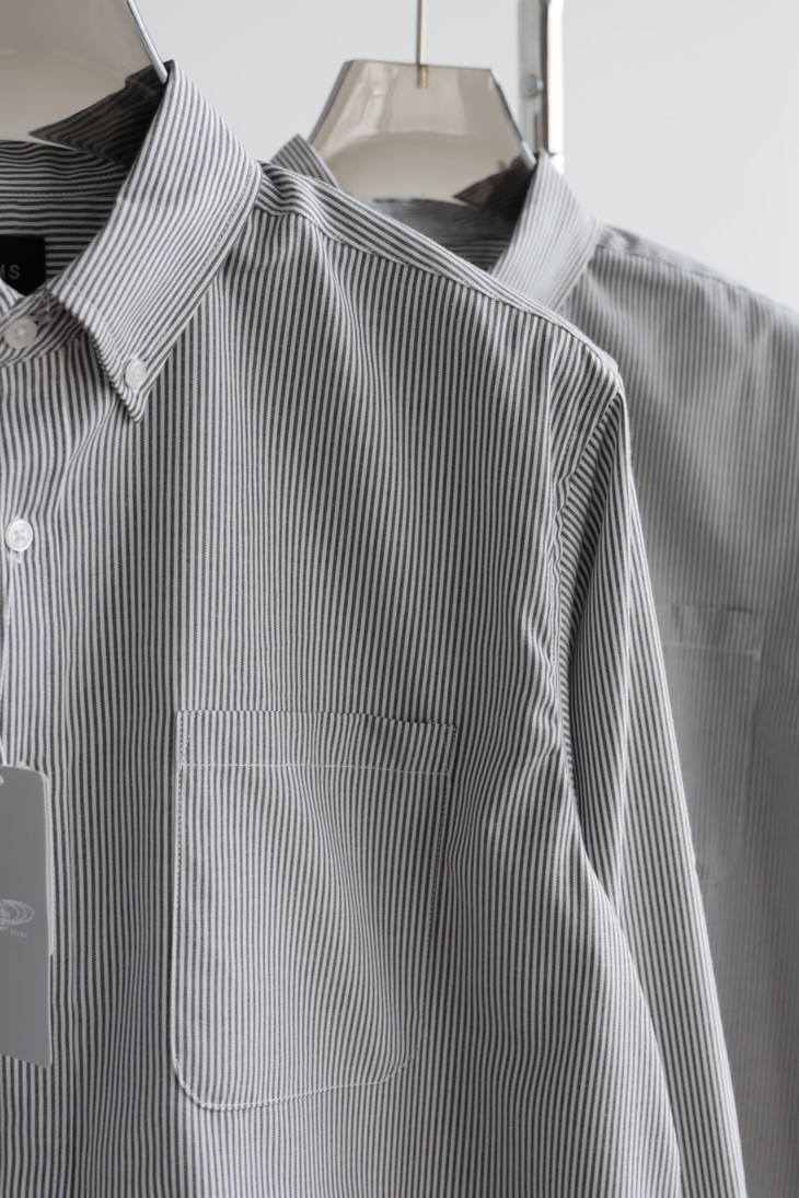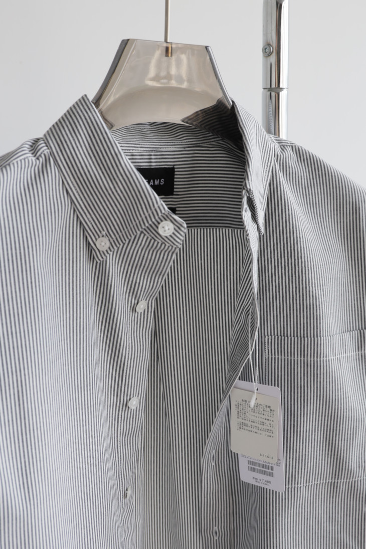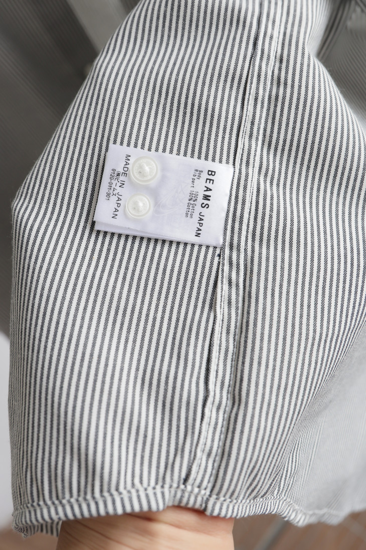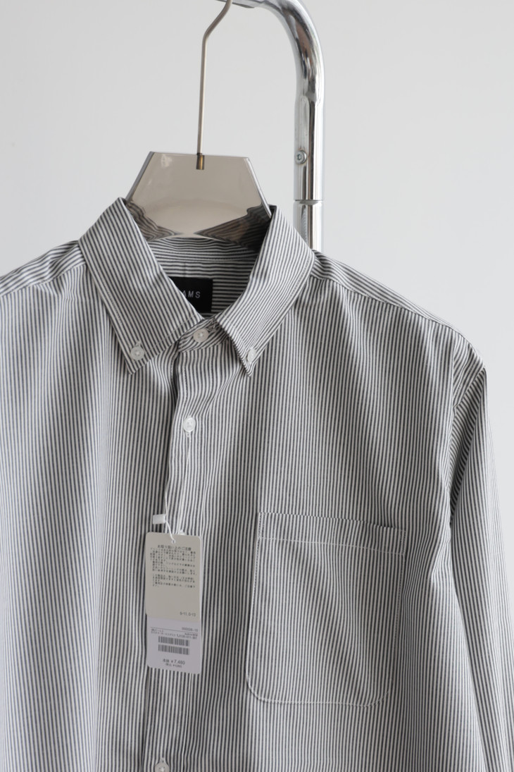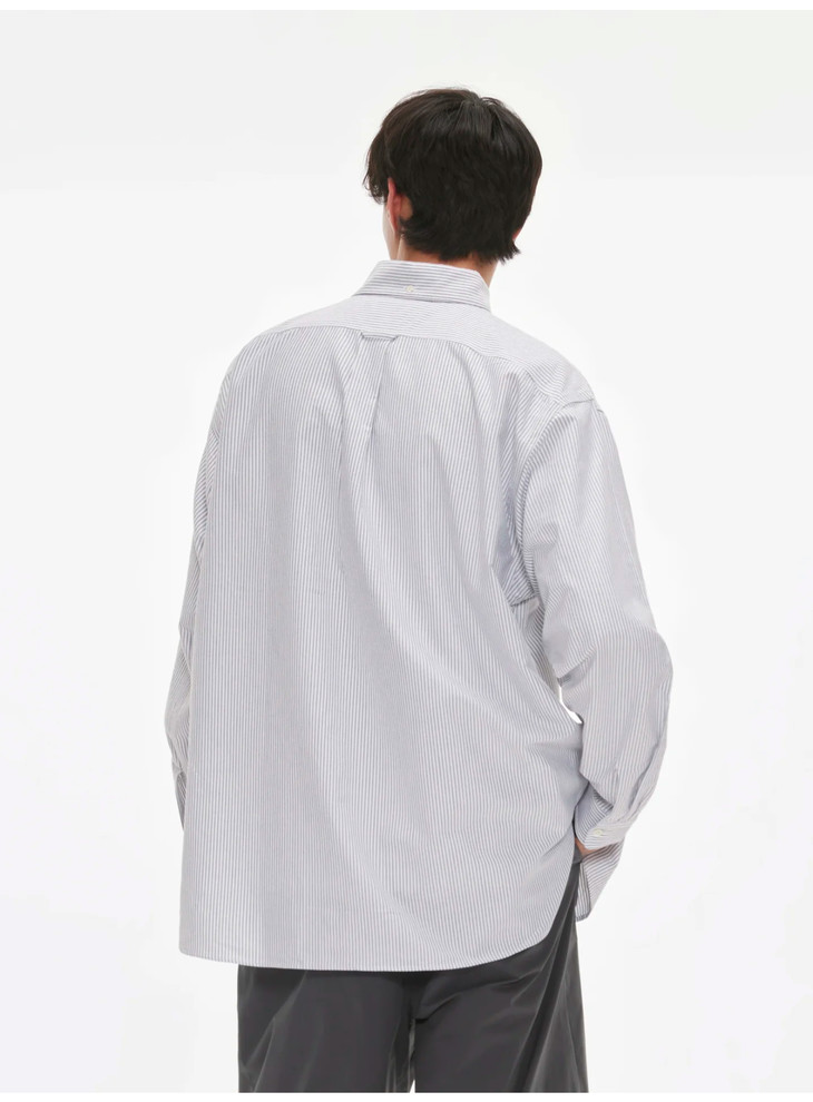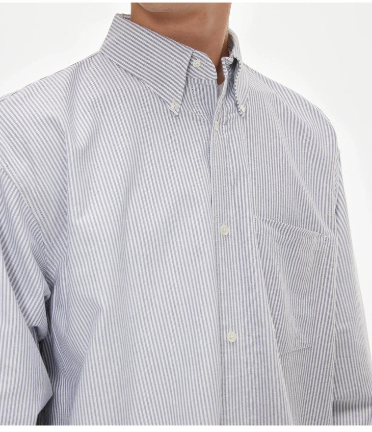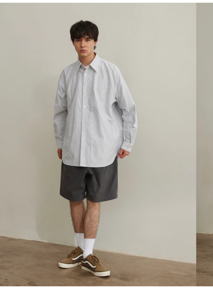 市面醉好 BMS 宽松日系重磅条纹口袋长袖衬衣