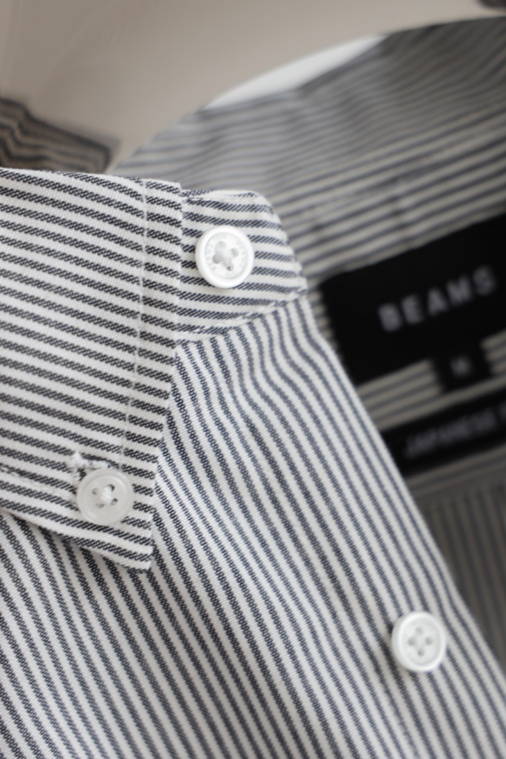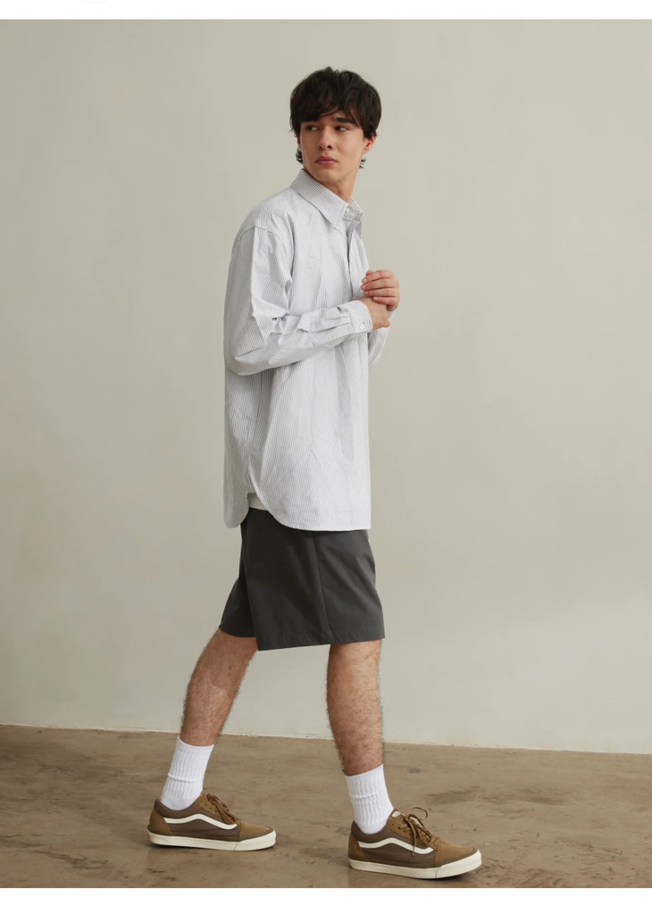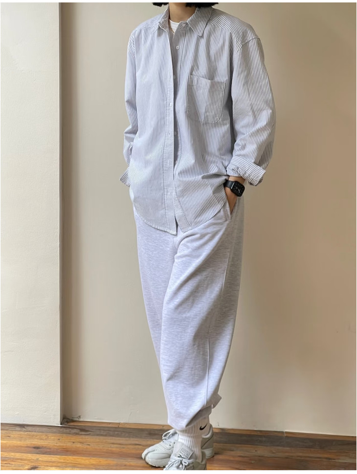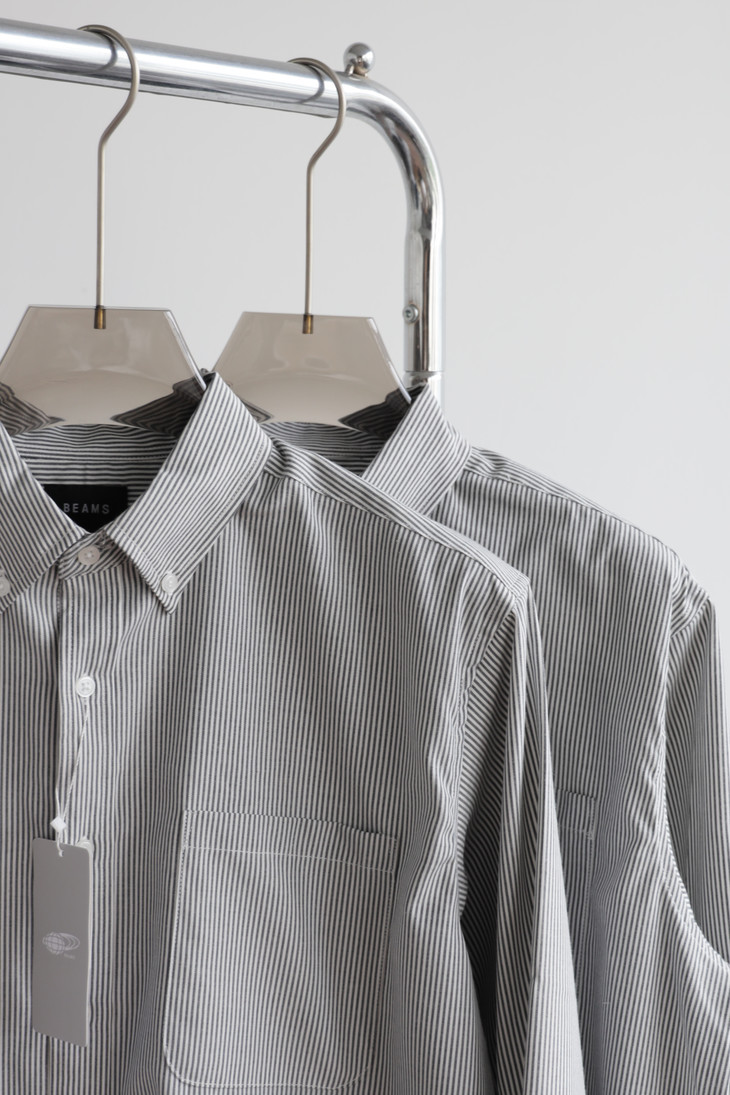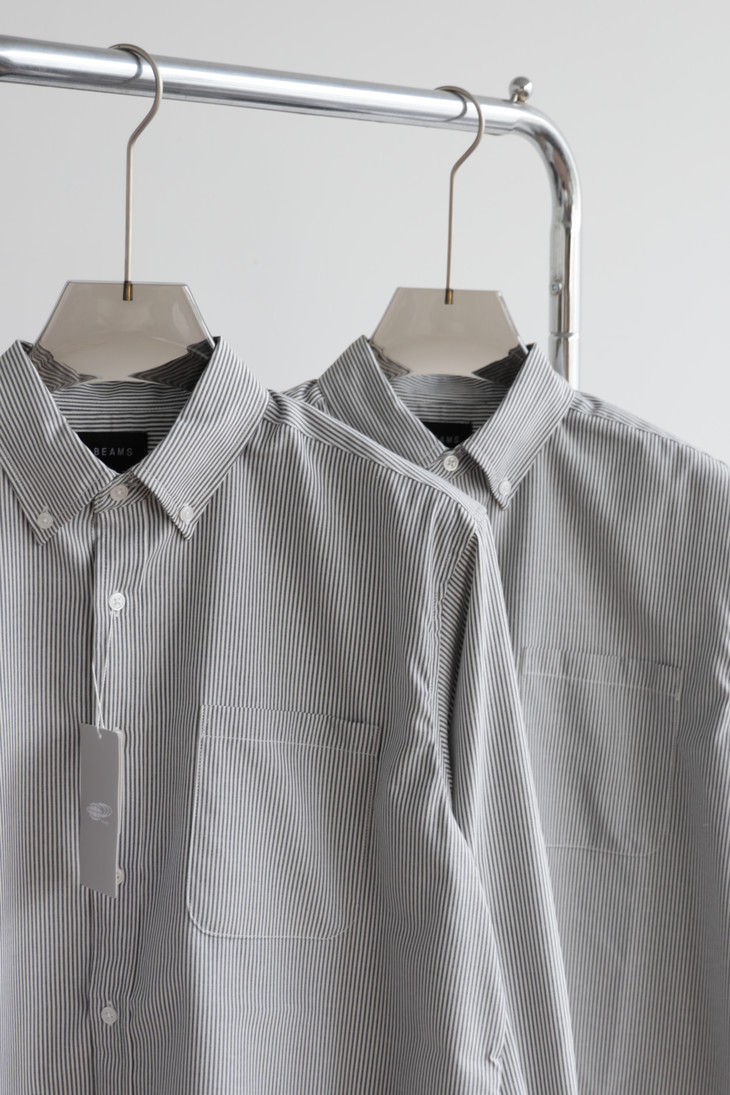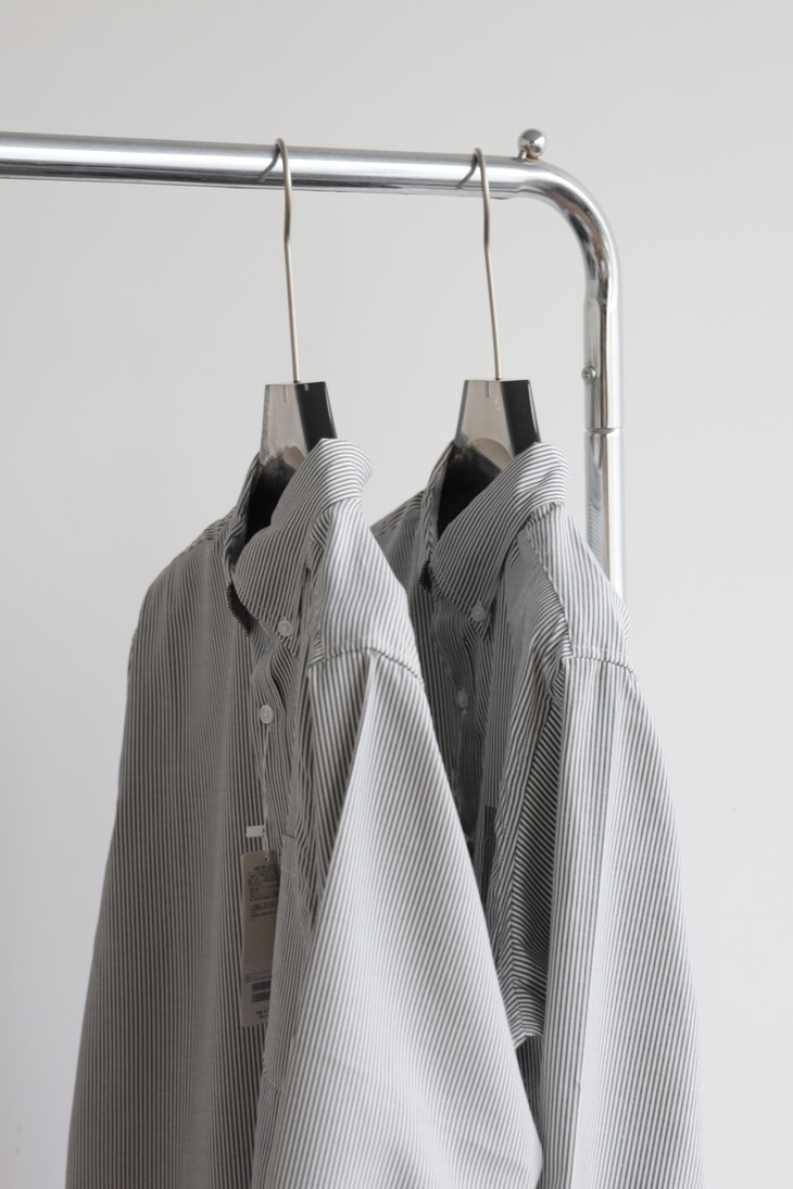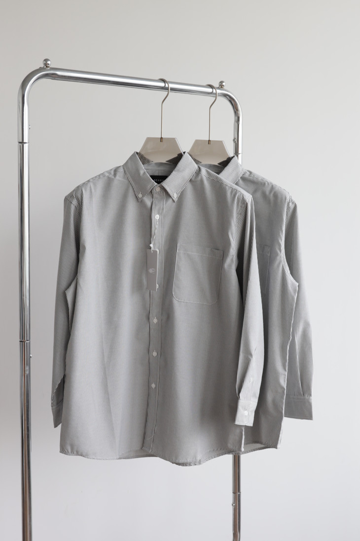 市面醉好 BMS 宽松日系重磅条纹口袋长袖衬衣