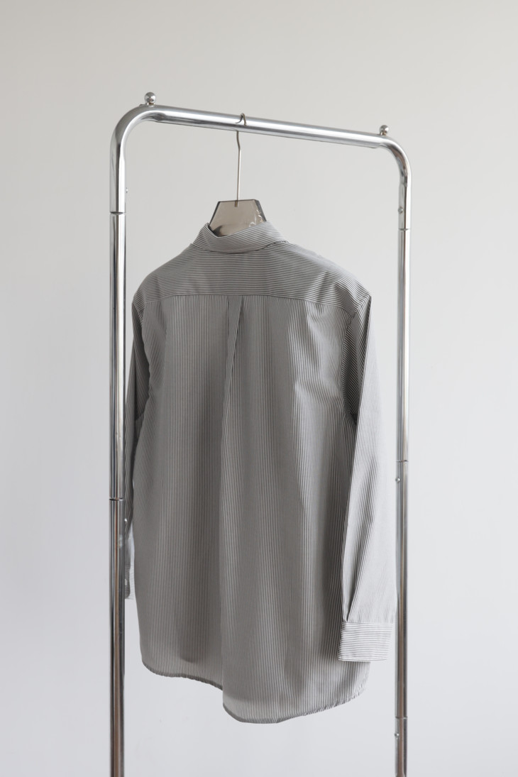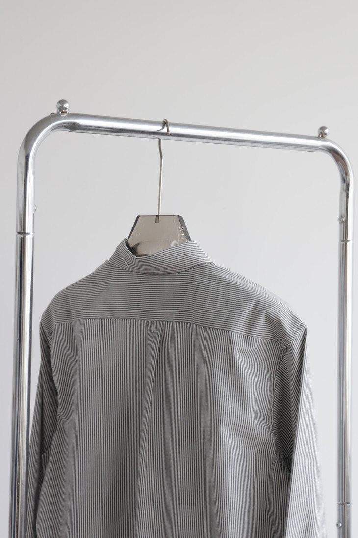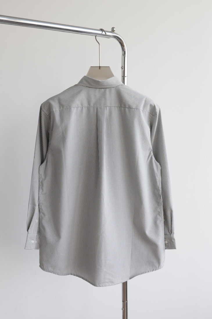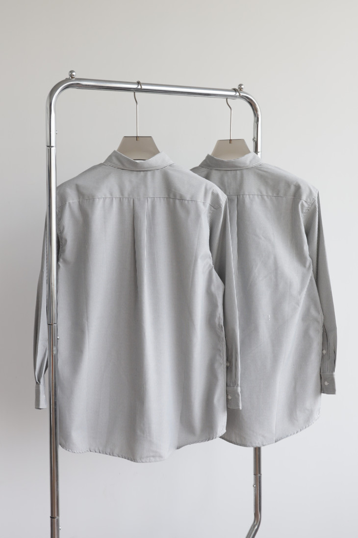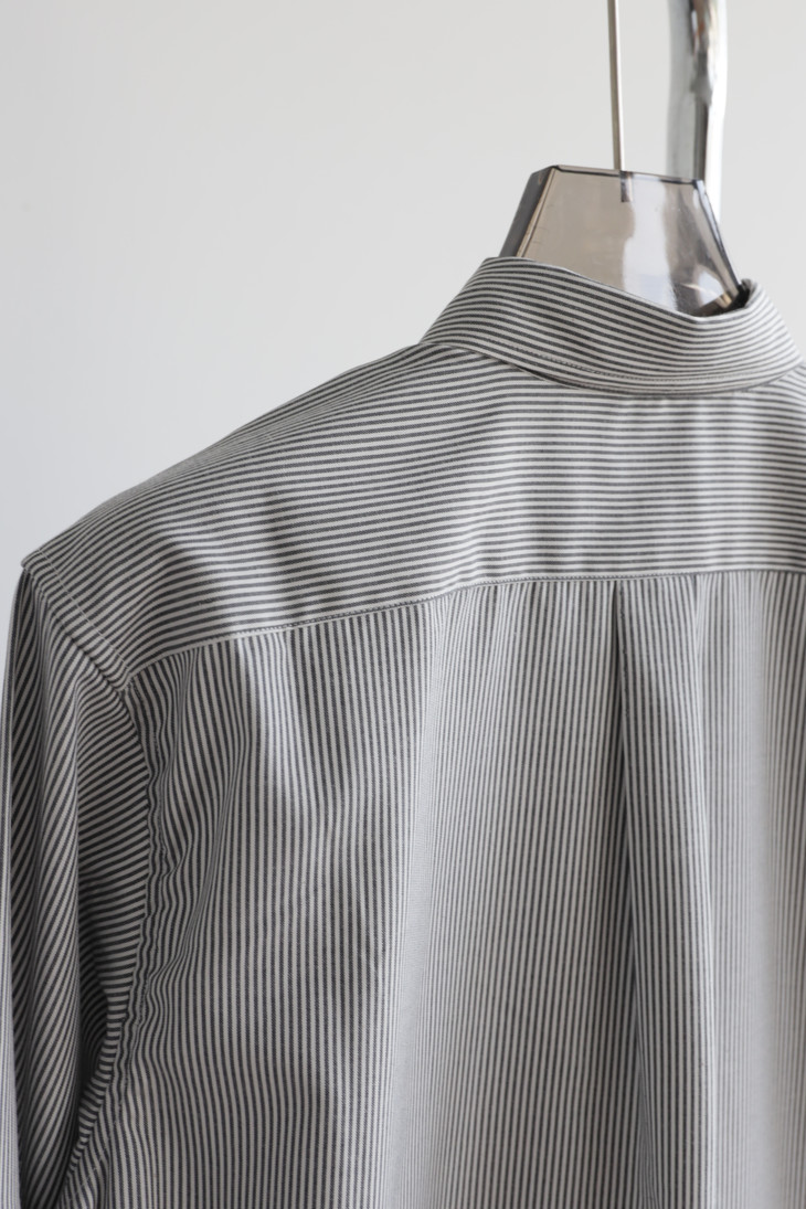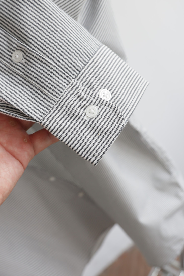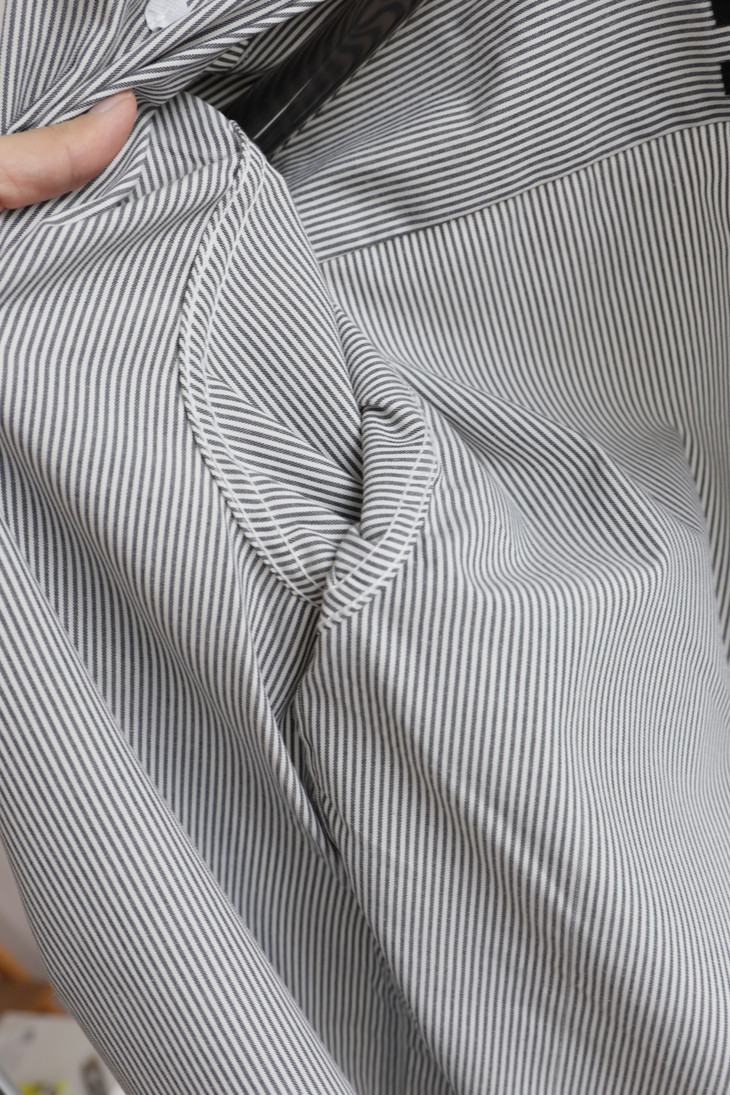 日本客供的灰色条纹面料,很有质感的棉质,舒适且厚实,立体硬挺的廓形宽松效果
