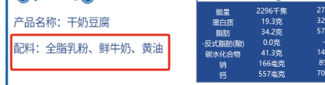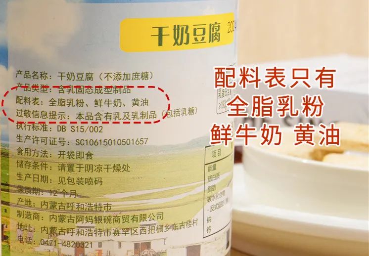 配料表里也是干干净净,只有全脂乳粉和鲜牛奶及黄油熬制而成,天 然补钙,吃的更放心。