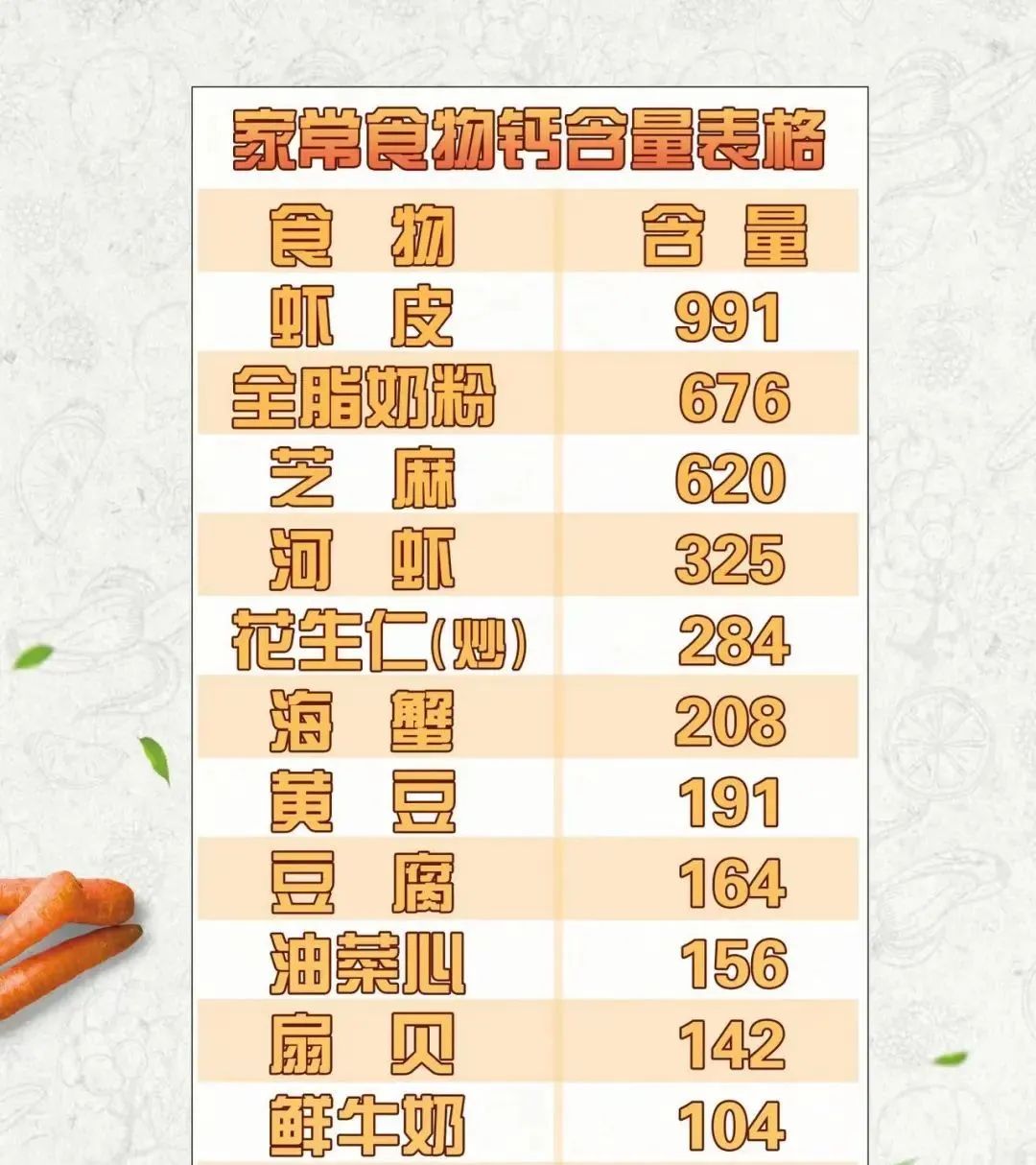营养专家带来一张食物钙含量排行榜,其实全脂奶粉的钙含量比鲜牛奶高6倍!