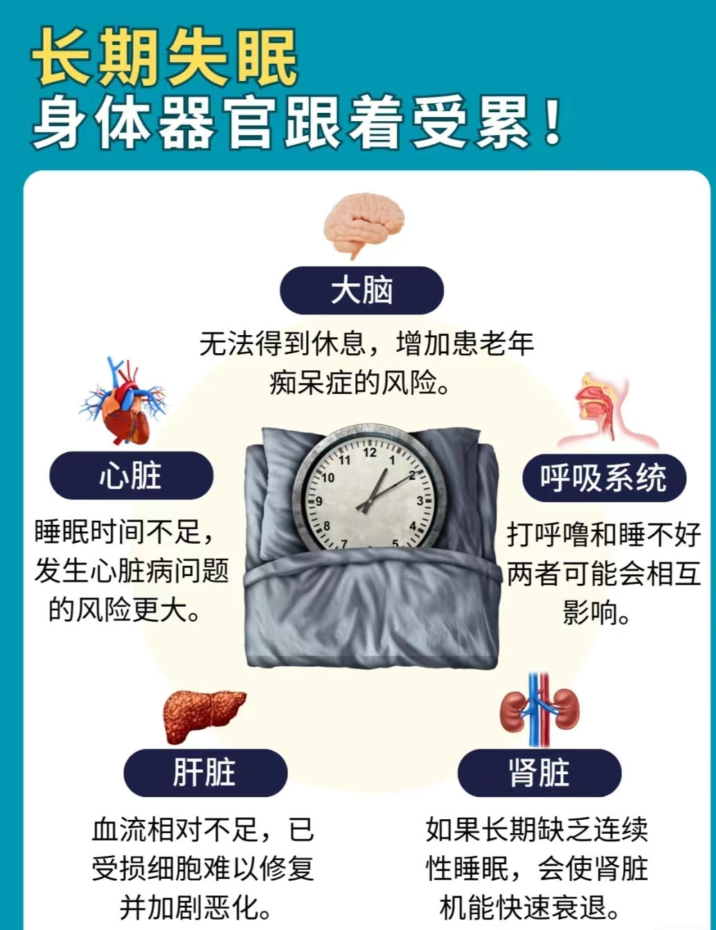 古人曾说:“一夜不眠,百日难补”。长期睡眠不佳,不仅会严重消耗人的精力,还可能导致以下一连串的健康问题↓↓