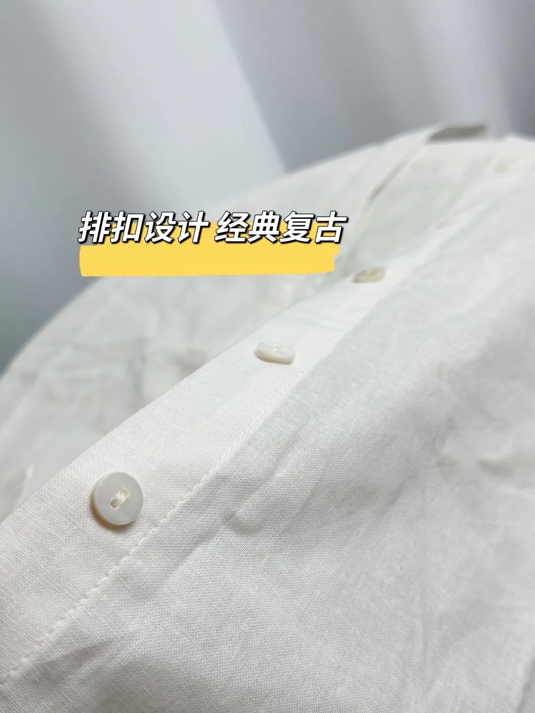 背面:交叠娃娃领,形成自然的V形弧度,像花瓣包裹锁骨~比普通娃娃领更有层次感!