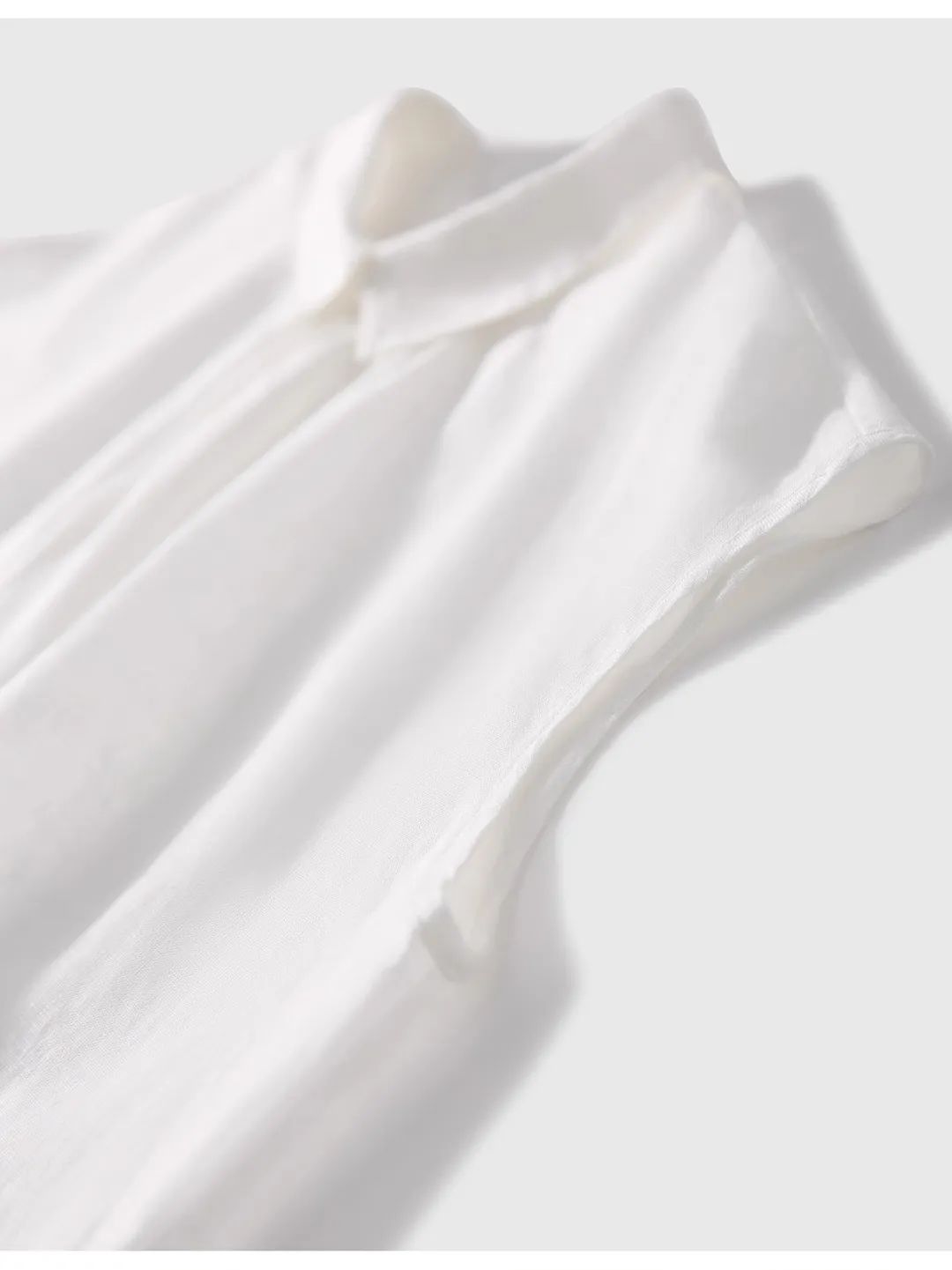 再加上无袖设计,双肩剪裁留有余量,上身展现出“小飞袖”效果。