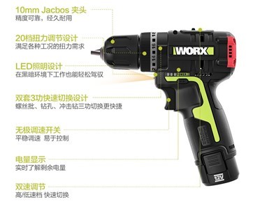 威克士同时也很注重产品的细节,10mm Jacbos夹头精度可靠,夹持稳定;高强度精校齿轮箱提供更耐磨传动系统,确保长时间运转、高强度连续作业下不剃齿、寿命长;长寿命旁路开关设计,微电流控制启停,确保开关不烧机。