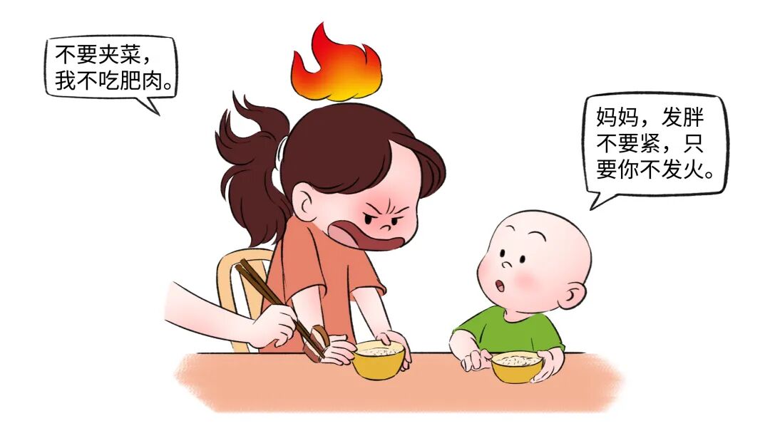 此时孩子在边上说:“妈妈,发胖不要紧,只要你不发火。”