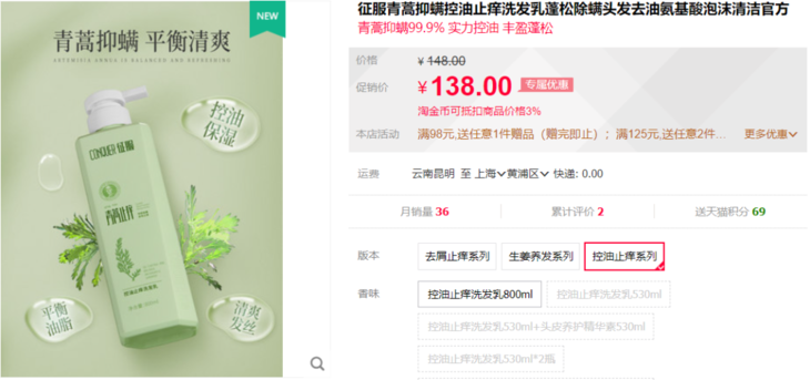 这款青蒿洗发乳在官网售价是138元/瓶,不算便宜。