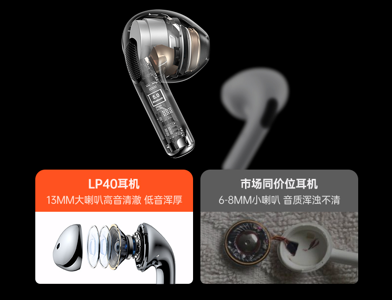 13mm超大动圈,双振动鼓膜,音质好,听歌就像到现场