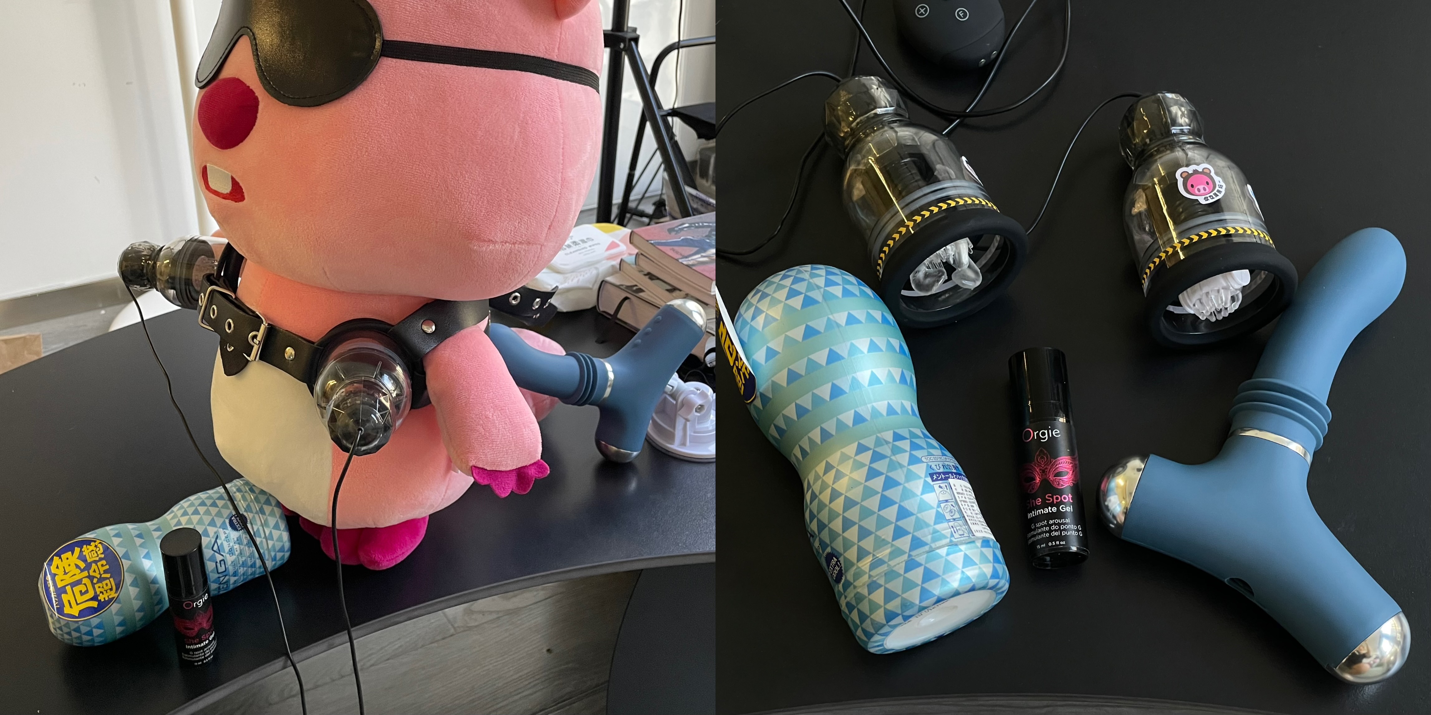 给飞机杯倒好润滑油,再给后庭炮机与菊花做好润滑,甚至可以给丁丁来点热感快感液
