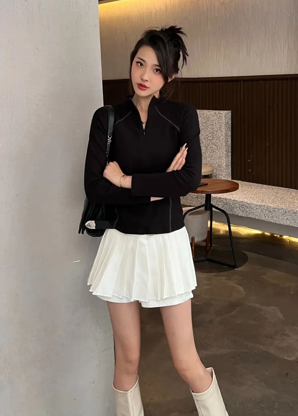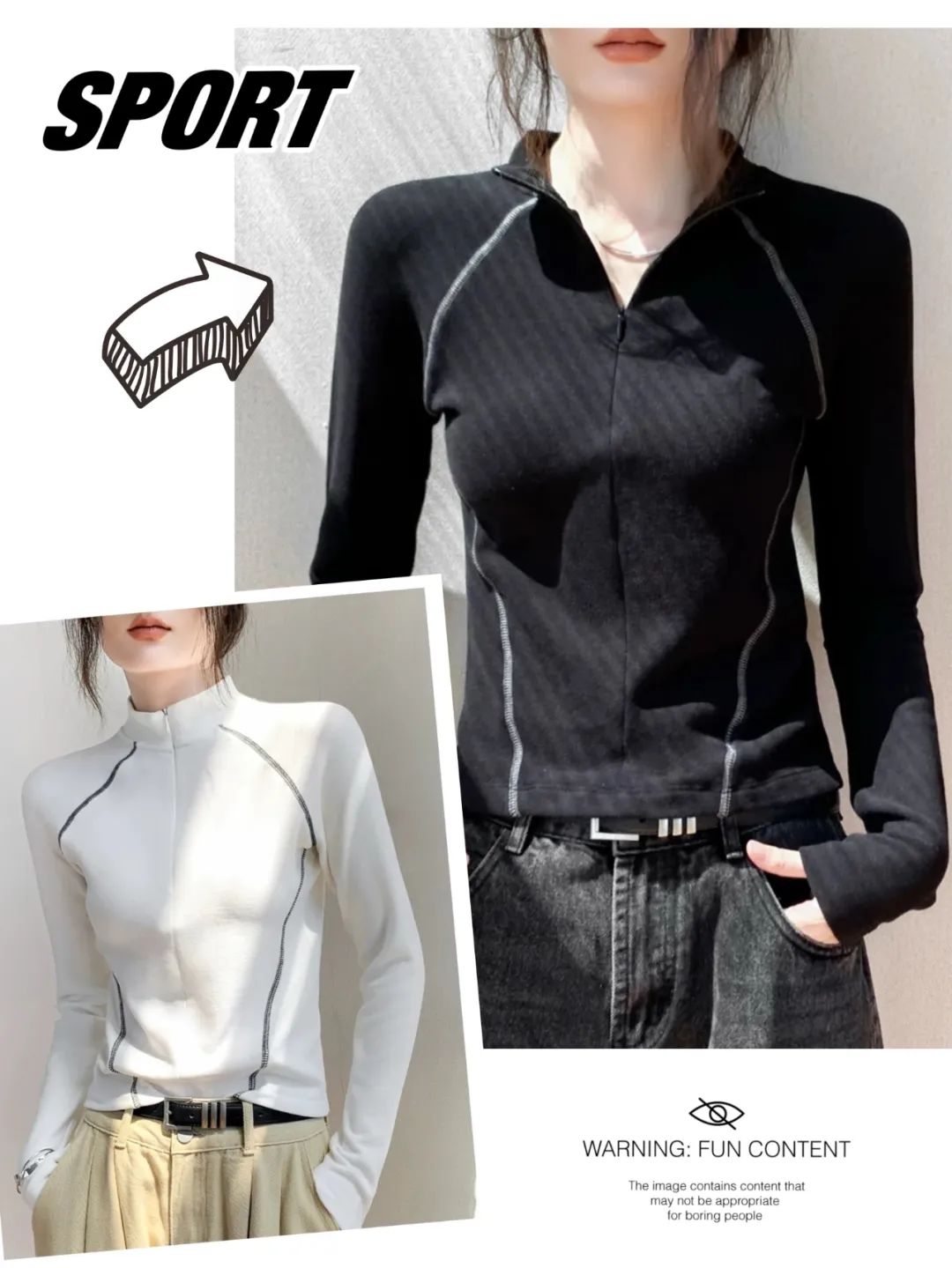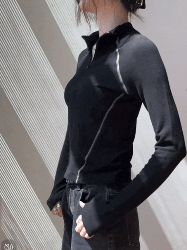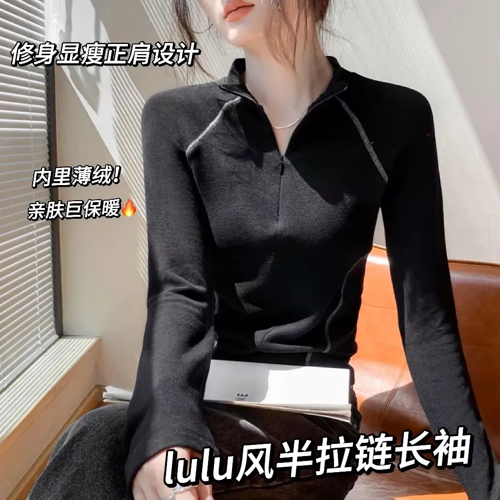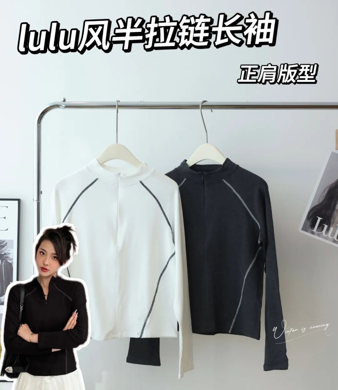 (lulu风半高领拉链长袖)上身一秒纸片人的感觉💃