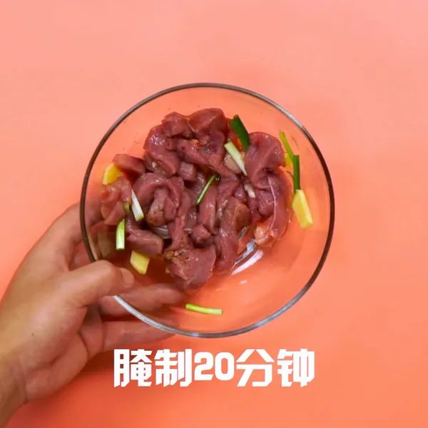 2.猪里脊放入料酒、盐、五香粉,加准备好的材料腌制20分钟