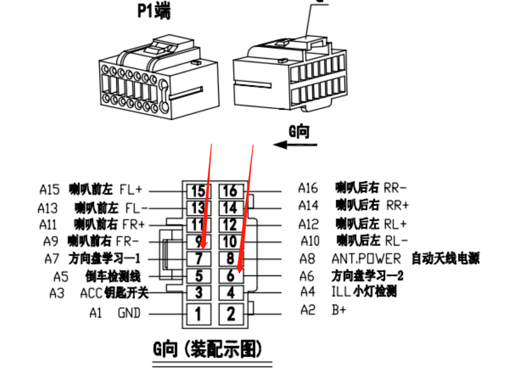 这个是车机电源的定义图,参考这个图,找到方控的连接线。