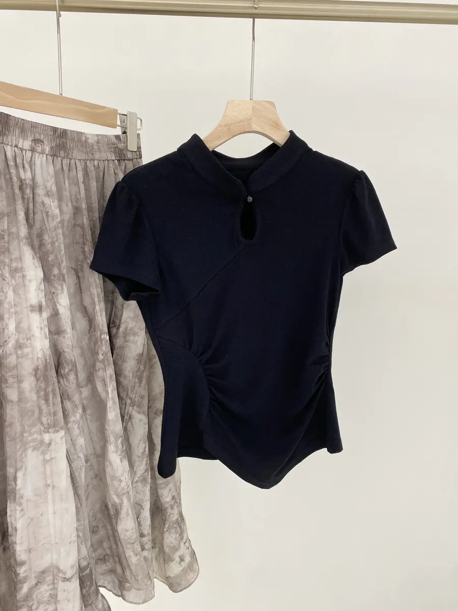 其次又是黑色,再加上挖空旗袍水滴领,轻微露肤,更显瘦