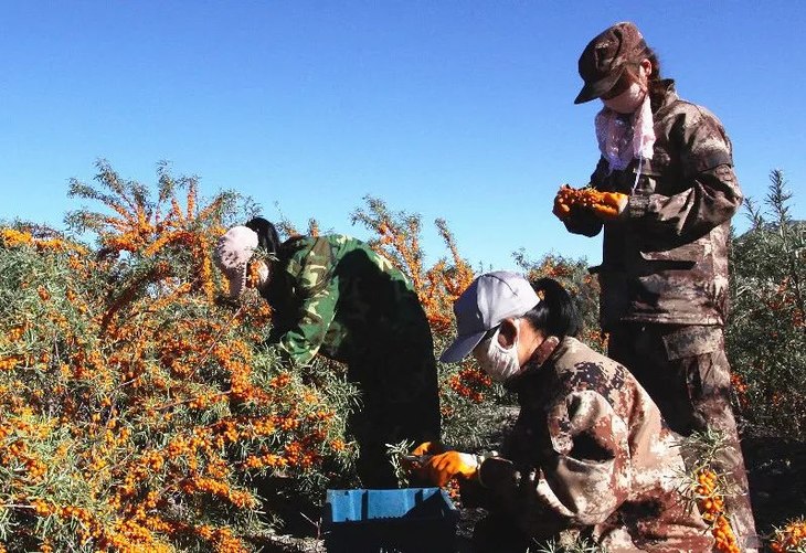 可以说是全球最大的大果沙棘连片种植示范基地,基地挂果面积已达15000亩, 2016年采摘沙棘果3000吨,占全球80%的采摘量。