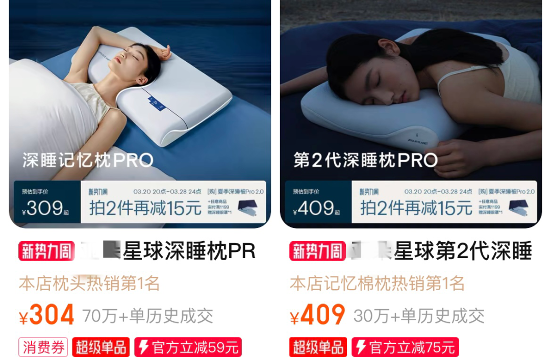 同为60支纯棉面料+羽丝绒填充+薰衣草助眠颗粒,但是!价格却便宜一半多!
