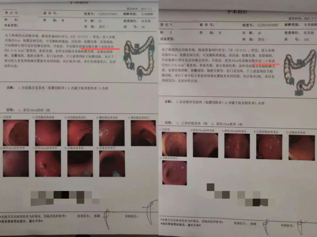 肠镜检查后证实,两个人的肠道的确出现了问题:父亲肠道里长了几十颗息肉,女儿肠道里也长了20多颗息肉。最后父亲摘除了一颗大的息肉,女儿摘除了两颗大的息肉,病理提示尚未发现癌变情况。