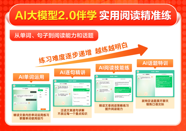 一站式完成词汇积累 × 语感培养 × 答题技巧三大能力提升,让AI不止是工具,更是孩子的学习教练!