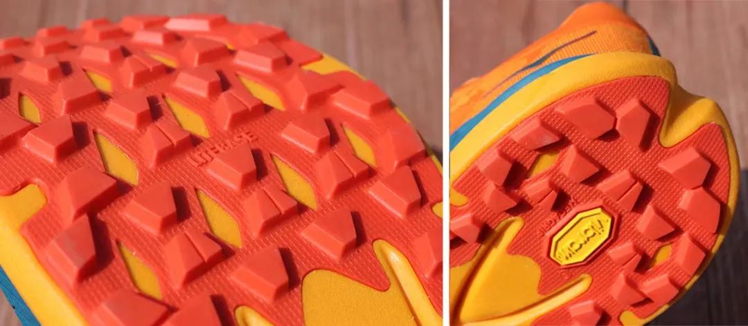 外底采用Vibram Megagrip复合材料,稍有区别是鞋底加持Vibram的Litebase技术,大幅减少鞋底厚度和重量,但保持优异性能和超级抓地力。可以看到,鞋底覆盖除中足部分以外的前后区域,这使得其减轻重量多达50克。