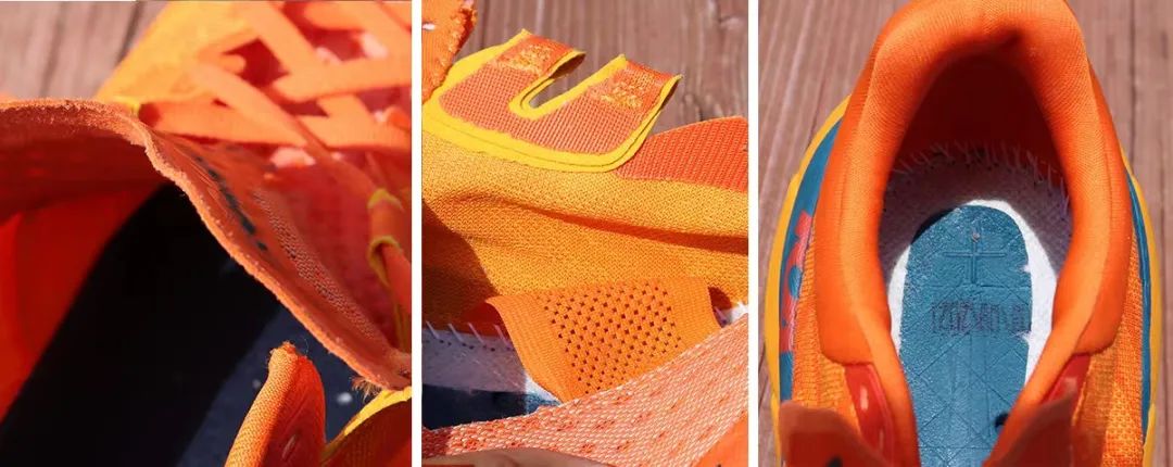 轻盈的鞋舌位置适中,使用回收聚酯制造的鞋带收放自如。近两年中,HOKA跑鞋鞋舌都采用这种一体式设计,与鞋垫下面的鞋底相连。