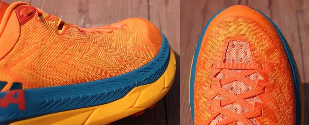 这些碳板处于对称位置,产生更宽容、更灵活的奔跑体验;然后是双密度中底:HOKA最灵敏、最有活力的EVA,这种反馈感觉像是脚下踩着覆盖柔软泡沫。
