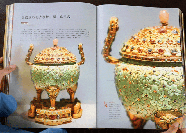 还有上面镶嵌的珠宝、雕刻的花纹、夔龙把手、象鼻底座......