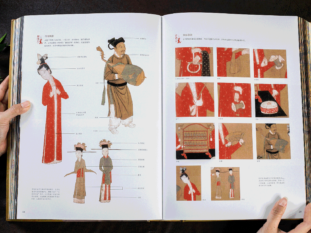 书里的图片,每一张都是参照了古今多部文献,多角度的进行专业调色,还原国宝在那个朝代的真实模样。