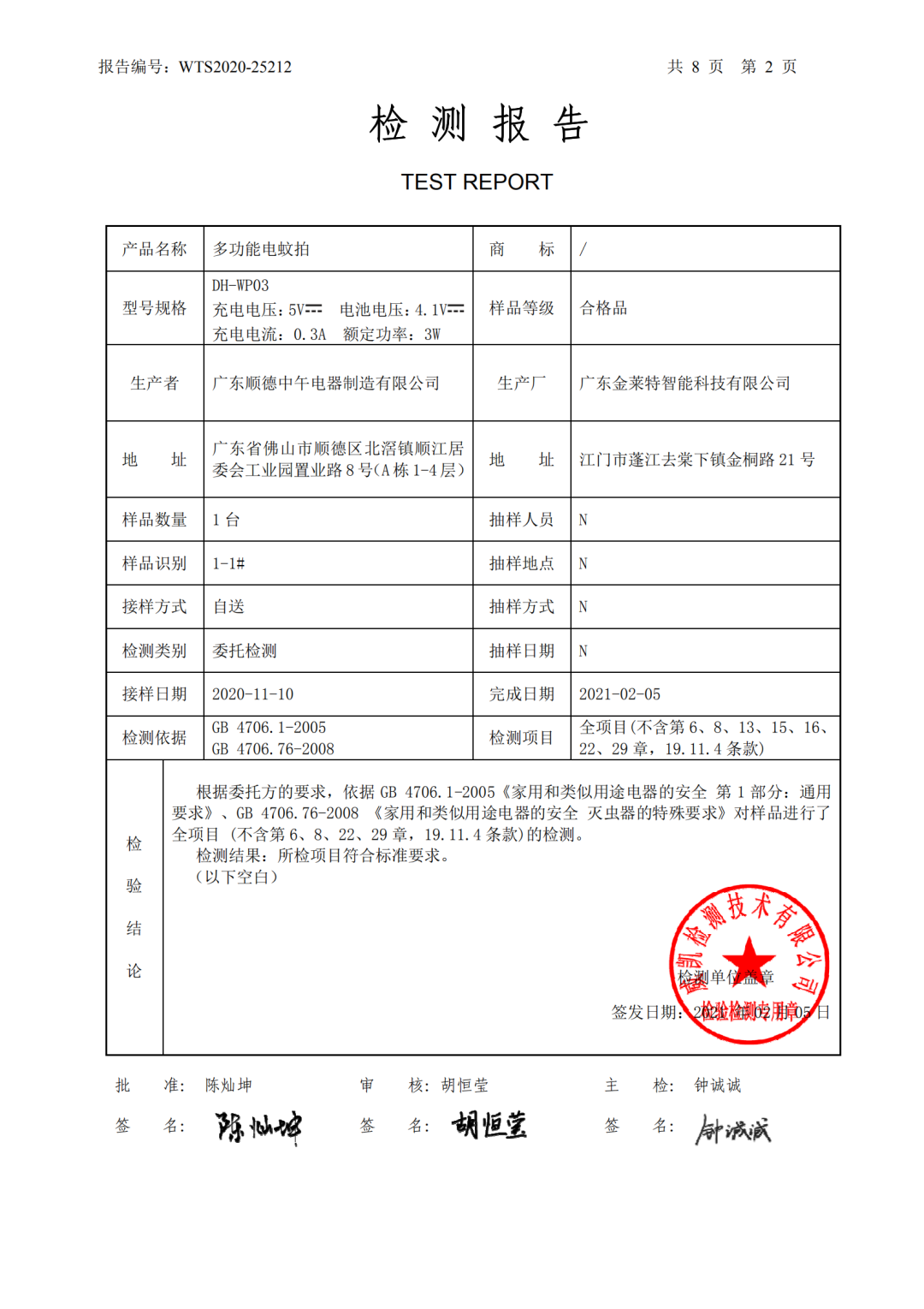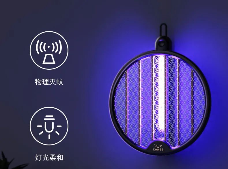 而置于手柄处的紫光诱蚊灯,对蚊子有一定的趋光性,在自动灭蚊模式开启时,蚊虫容易被吸引飞向电网,自动诱杀蚊虫