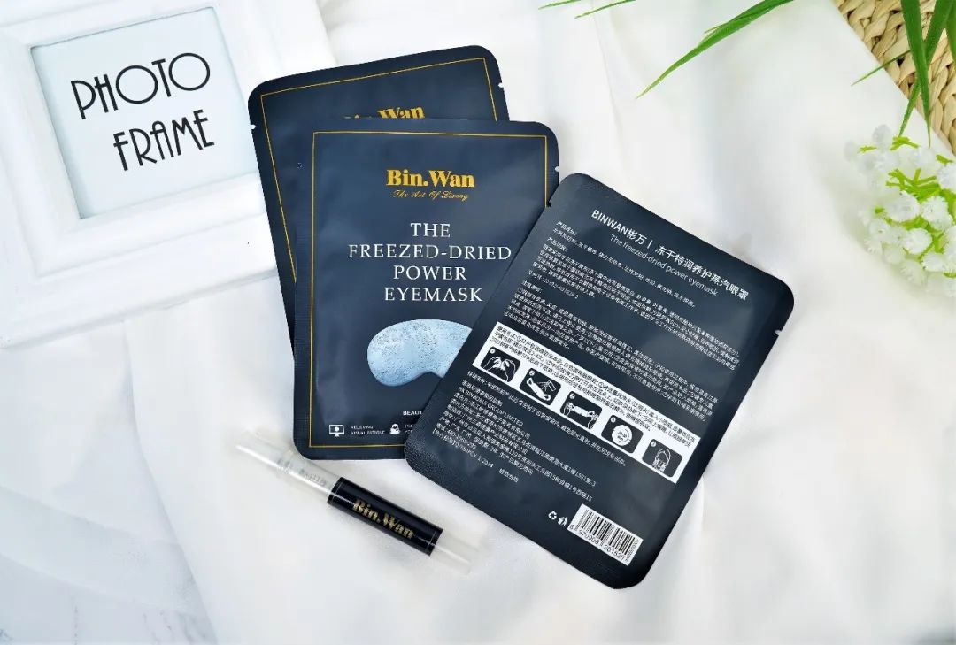 彬万通过新型冻干休眠黑科技专利,将虾青素、叶黄素、玻尿酸等精华活性在膜布中。