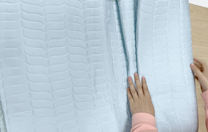 这款凉席厚度仅有1cm,把它叠起来后占用的空间和一件厚毛衣差不多,而且折叠都不变形。