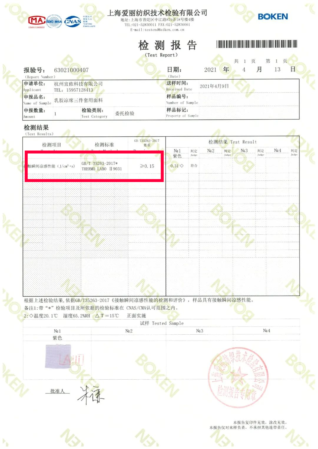 Q-max值表示的是接触瞬间凉感,国标GB/T35263-2017对此有详细的规定,纺织物≥0.15便具有接触凉感性能。