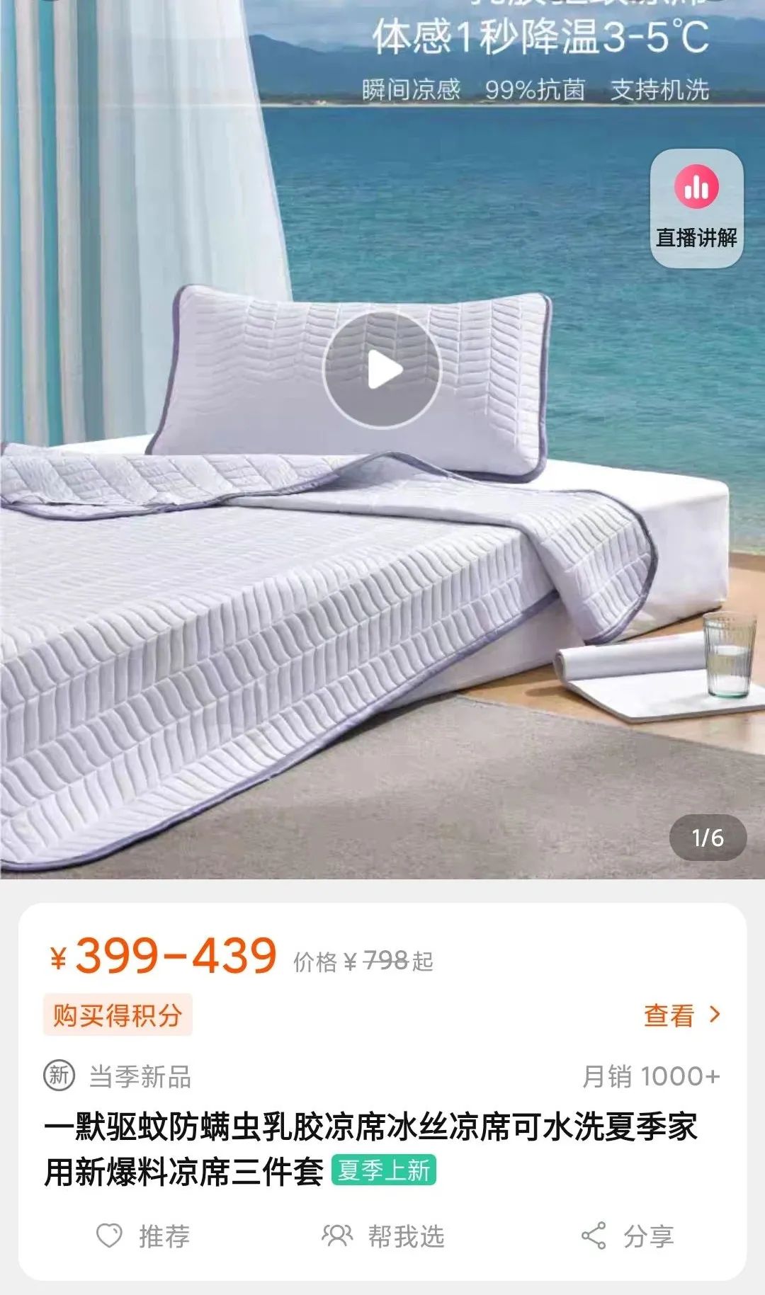 大家关注的重点来了!!要知道普通的冰丝三件套都要300元起,乳胶凉席的价格就更不便宜了,网上随便一搜都要四五百元~