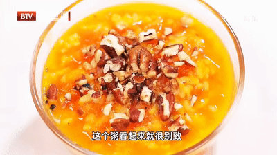 史老和黄老分享了一碗他们坚持吃了20多年的早餐糊糊——八宝羹。里面也加了核桃仁。