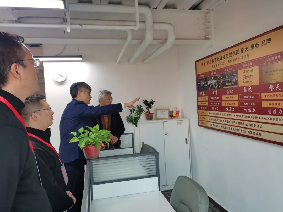 12月16日,国家卫健委干部培训中心党委书记、副主任蔡建华到昫爸英语北京总部参观调研。昫爸英语品牌创始人兼CEO昫爸、常务副总裁王新亭、教学总负责人朱涛、销售部总监韩庆辰等分别陪同。