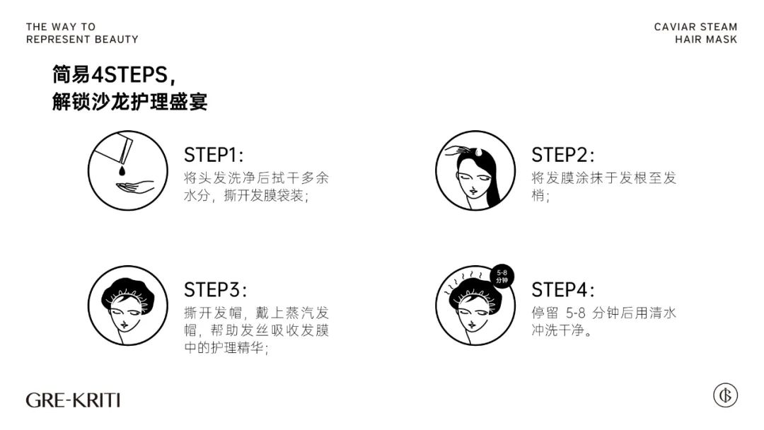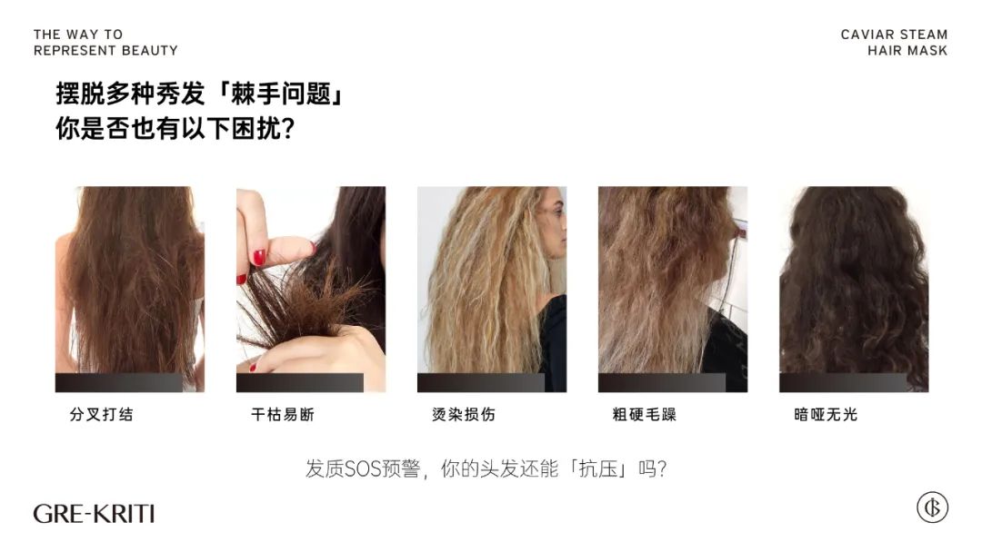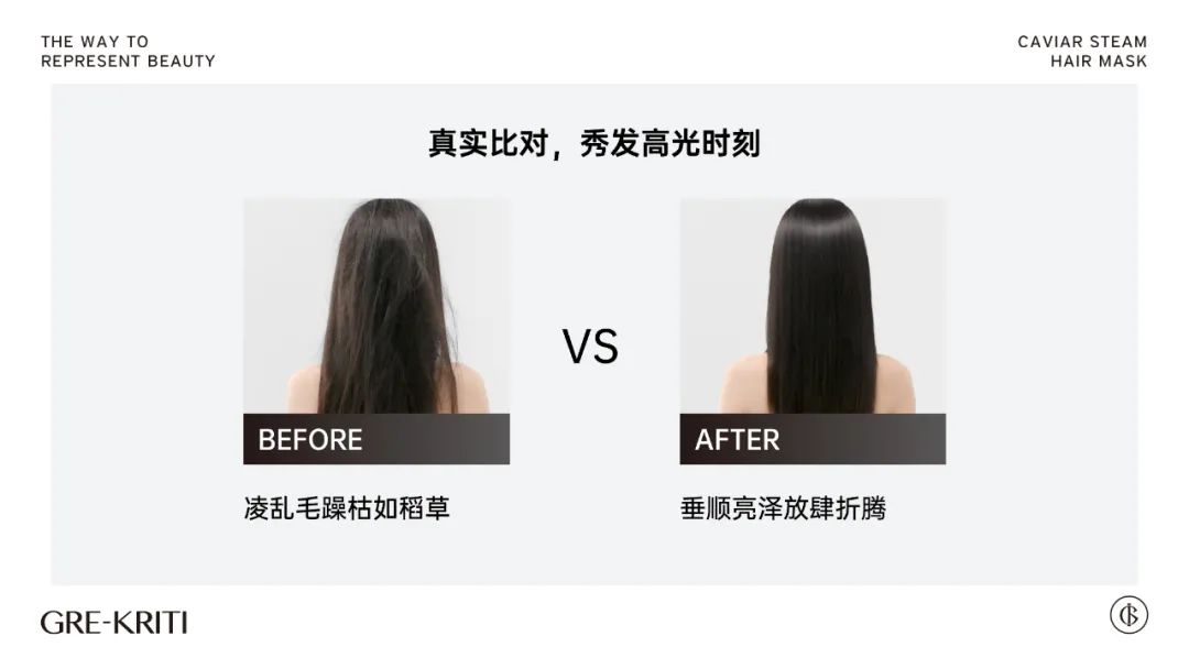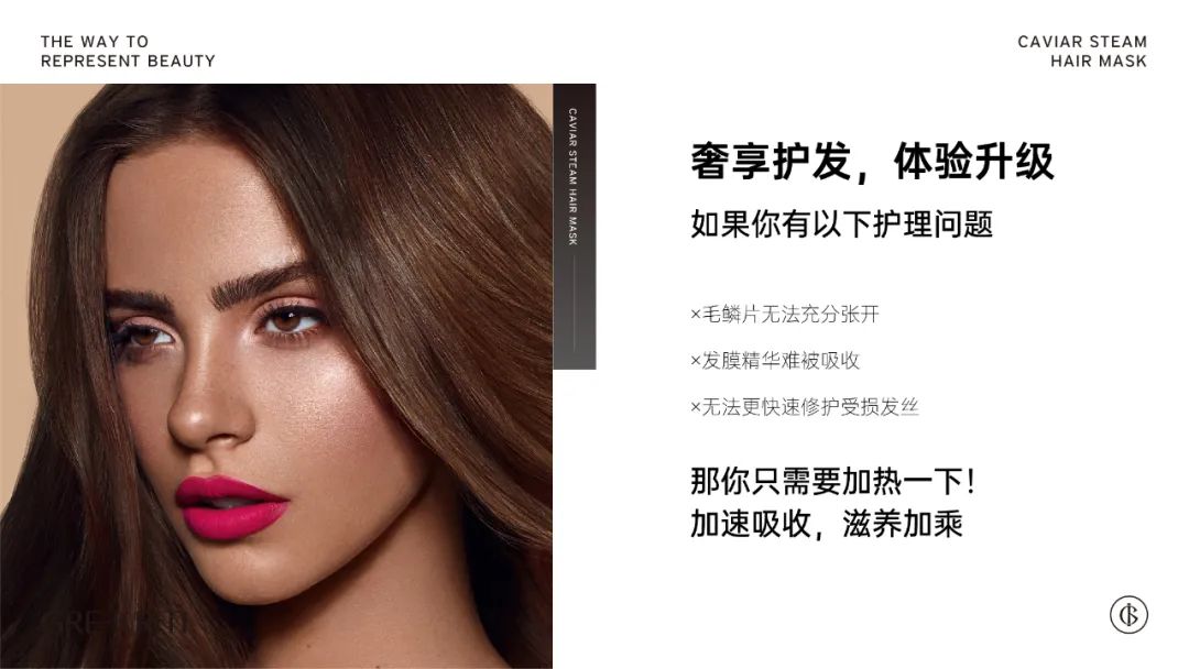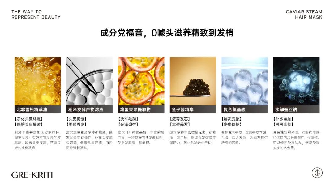 鱼子酱精华:帮助秀发修护亮泽活力,防止秀发老化干枯。