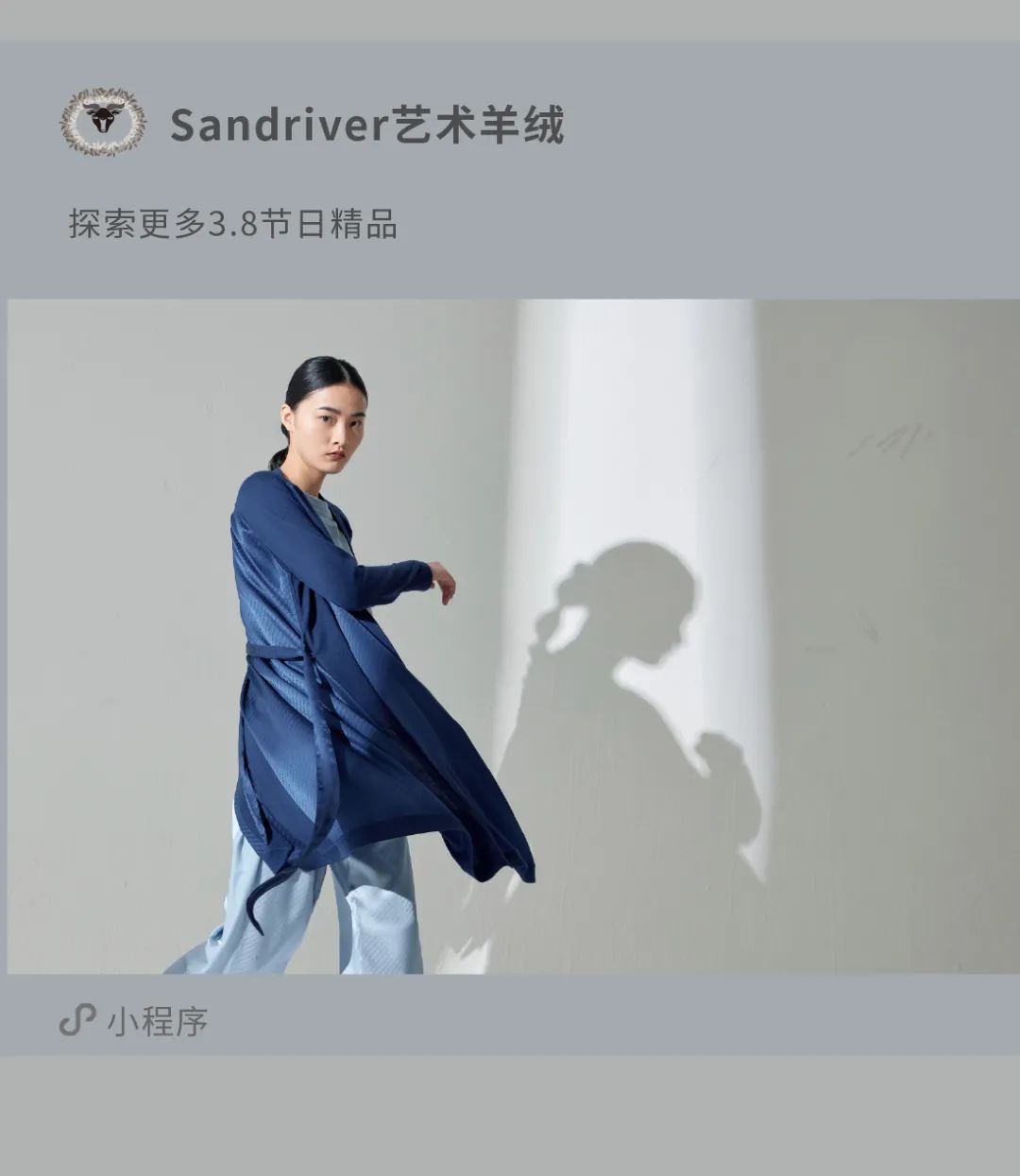 历年在巴黎时装周亮相,享誉世界的艺术羊绒品牌[Sandriver 沙涓]由羊绒布道者郭秀玲女士创立。阿拉善自有牧场纯种羔羊绒,日本国宝设计师小筱顺子,上海自有基地精工细作。承载羊绒情怀,坚持匠人品质。