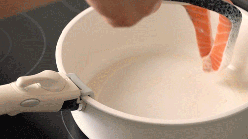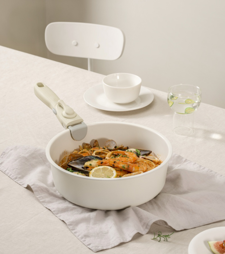 白色锅具简洁耐看 ,拍照上镜 ,光放在厨房带来的清爽、温润感,就能让人心生欢喜。