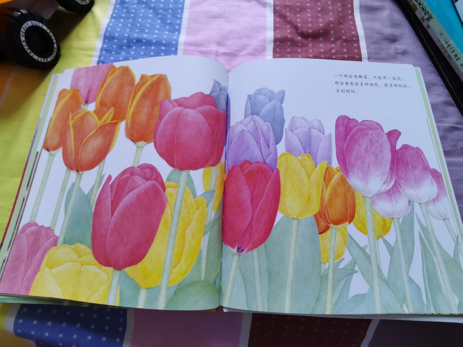 🌷 首先被封面吸引了,细腻唯美的图画,描绘了郁金香鳞茎发芽,叶子长出地面,花朵开合直到凋谢的全过程,让孩子在一本书里看见一朵花的一生。