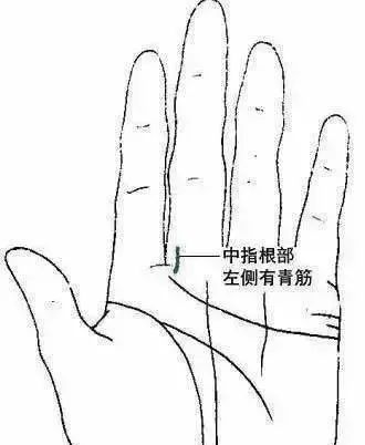这是因为中指根部的这根青筋,一般代表脑部动脉硬化程度。